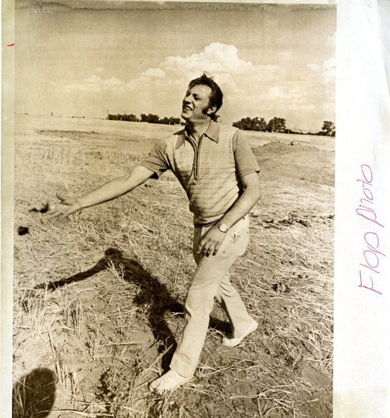 George DiCiero the city manager at the time throwing a cow chip during a cow chip throwing contest. A cow chip is a dried pile of cow dung that is used at cow-chip-throwing competitions. Chips are often tossed Frisbee-style.