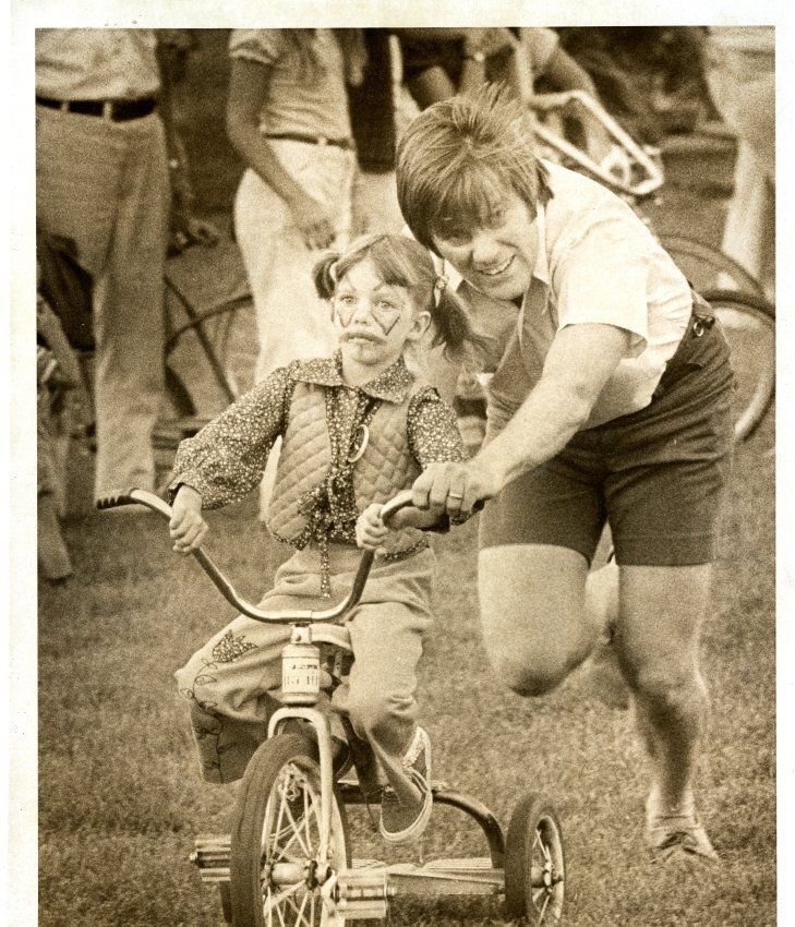 "Wild Ride" June 1976 - Girl with face paint - on tricycle with adult pushing