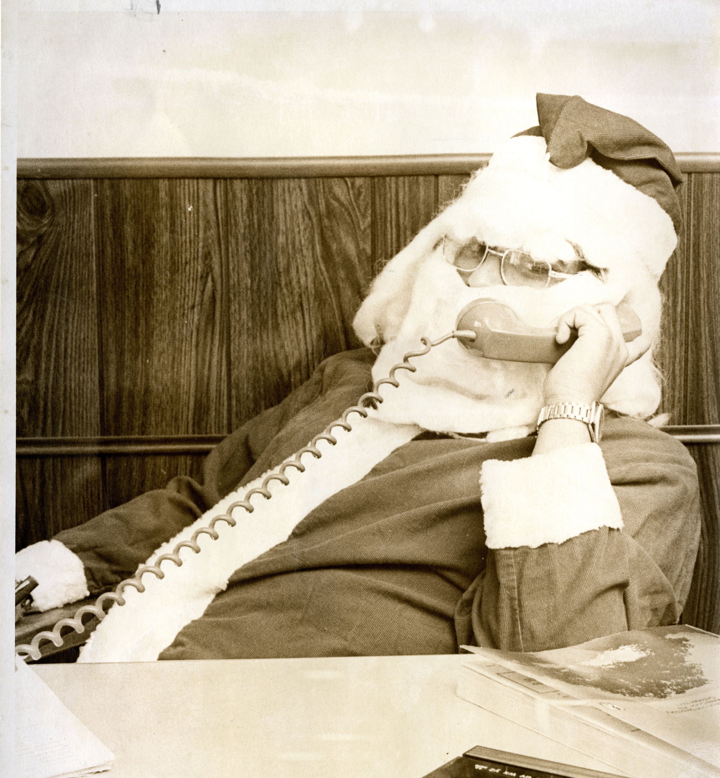 Office worker dressed as Santa Claus - on the phone 1976 Could this be Walter P. Spader?