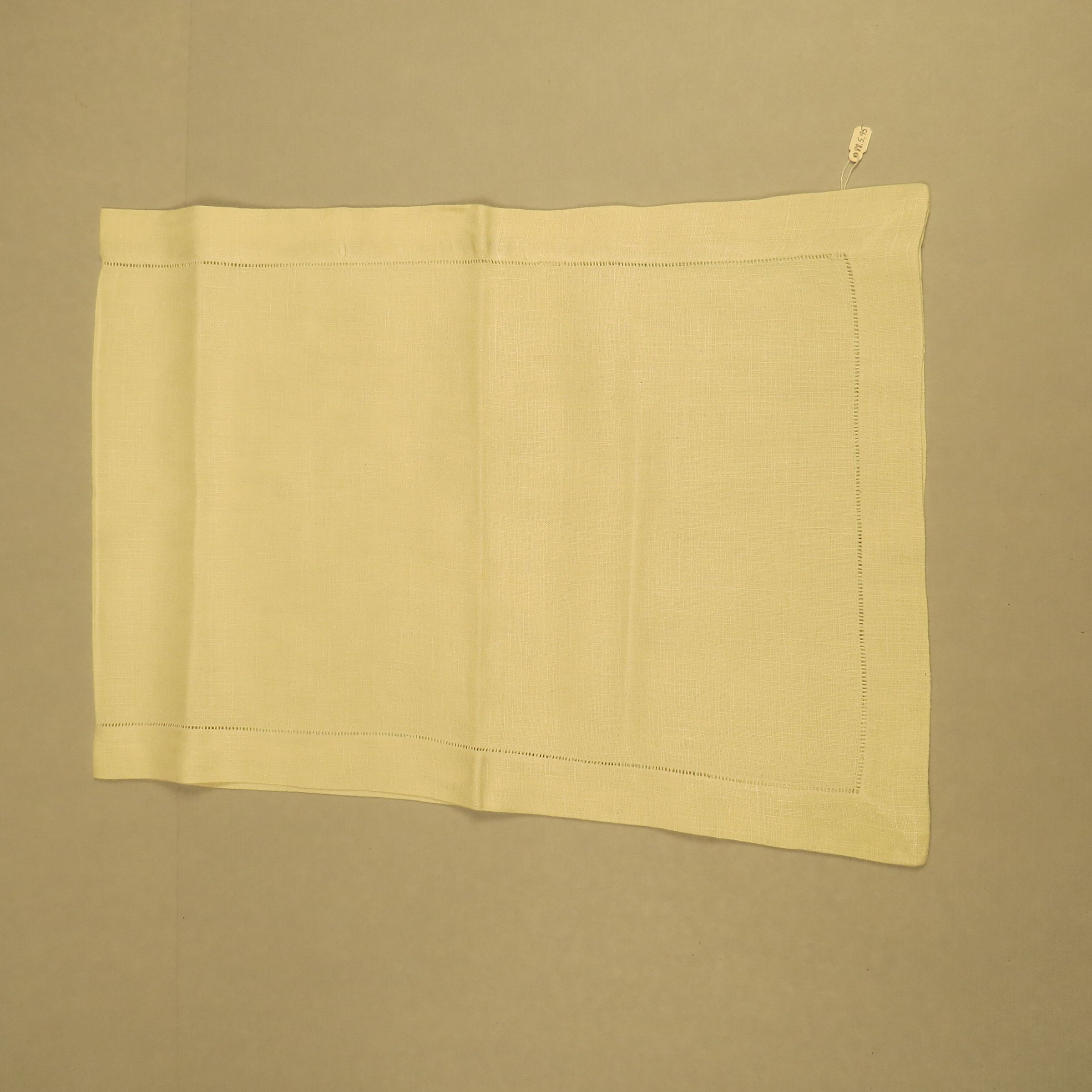 Rectangular linen textile with a hemstitch all the way around. The furniture scarf measures 15.5" (w) x 43.5" (l).