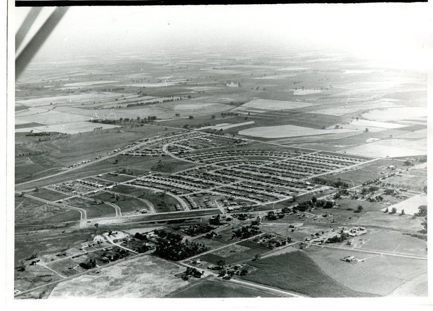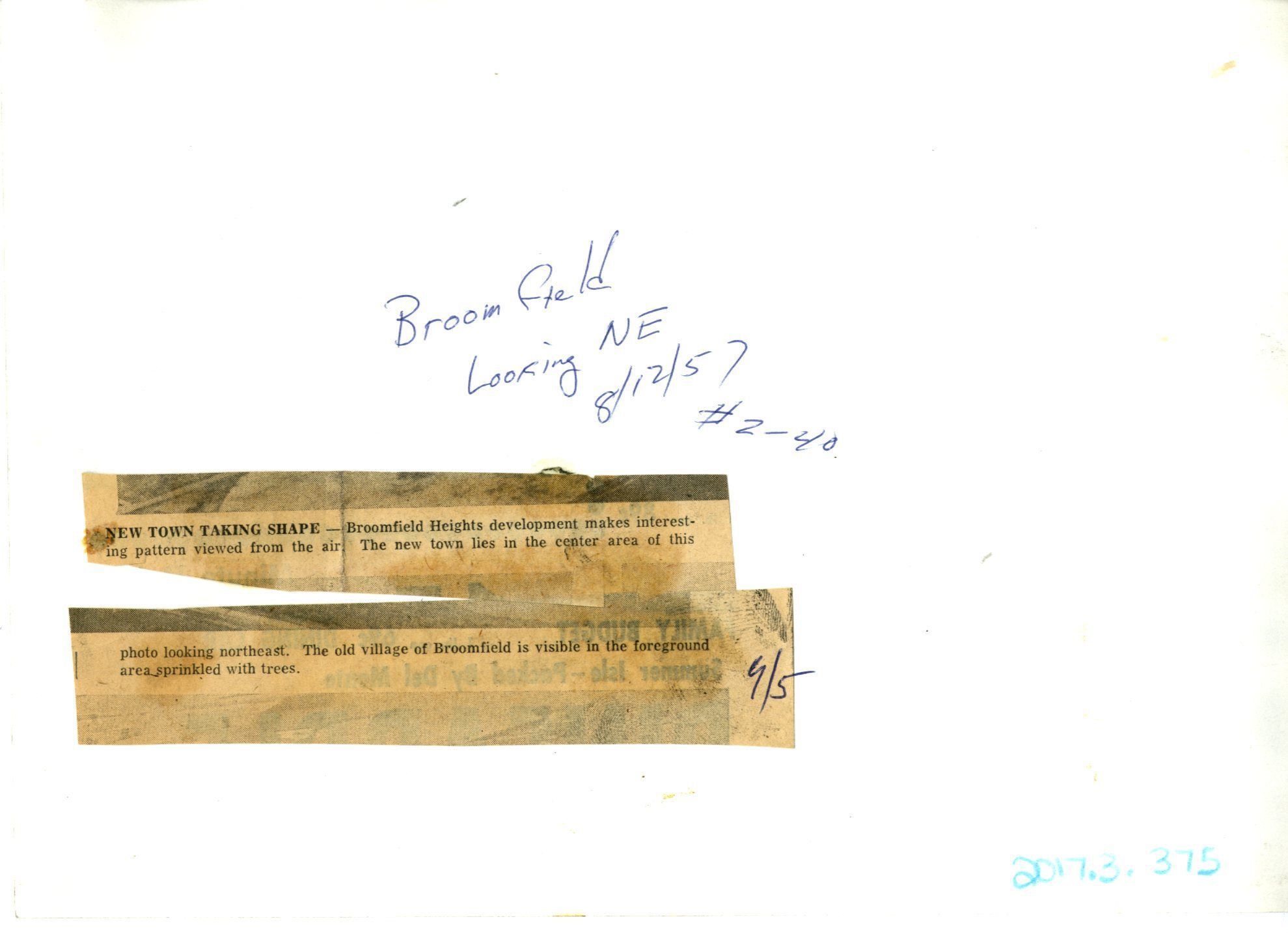 Aerial map of Broomfield Heights development looking Northeast. The old village visible in the foreground.