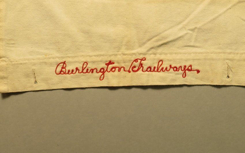 Burlington Trailways was started in 1929, and ran buses. This item was likely used to cover the headrests of the passenger seats as an item like this would have been easier to clean than the seat itself. The seat cover measures 14.5" (w).Collection