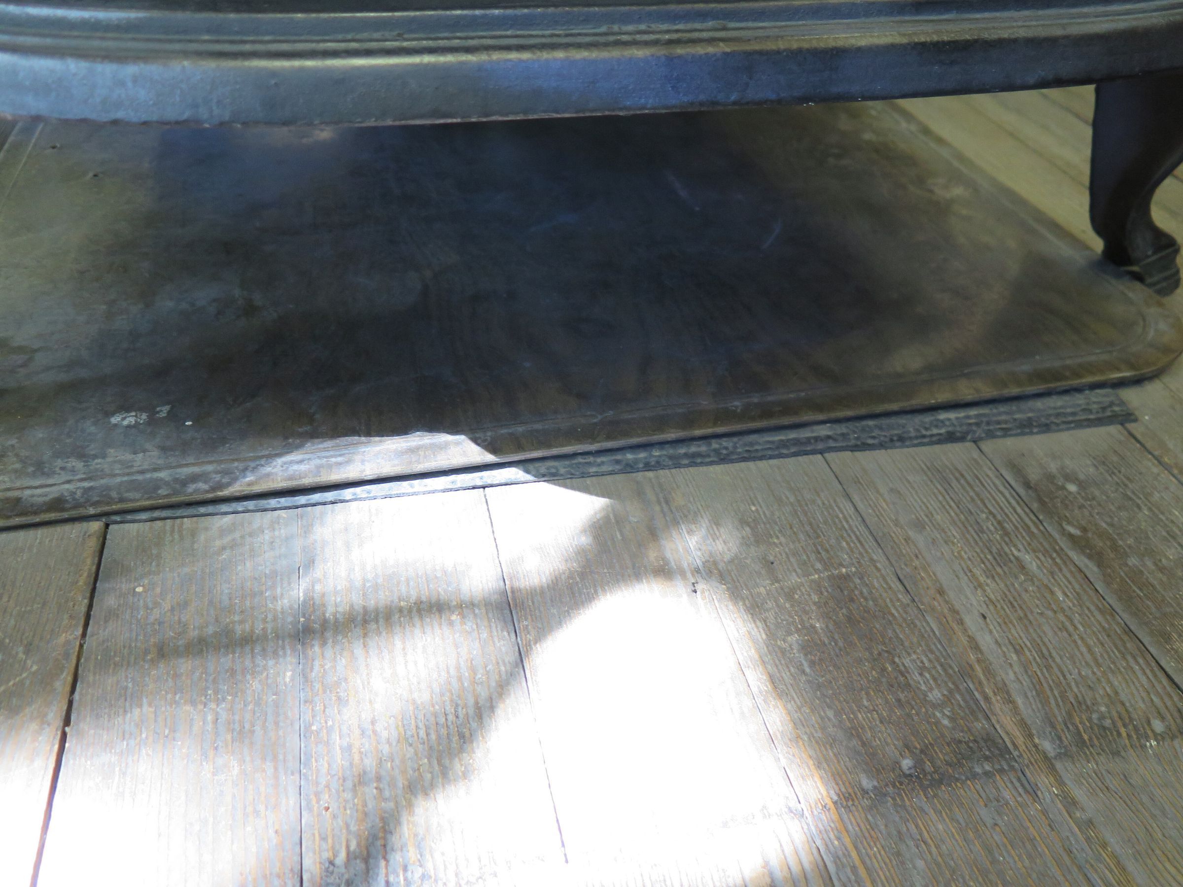 This is a black rubber pad to protect the floor under the board that the stove rests on. The rubber pad measures 19.5" (w) x 25" (l). The length is estimated because the rubber pad ends underneath the stove board.
