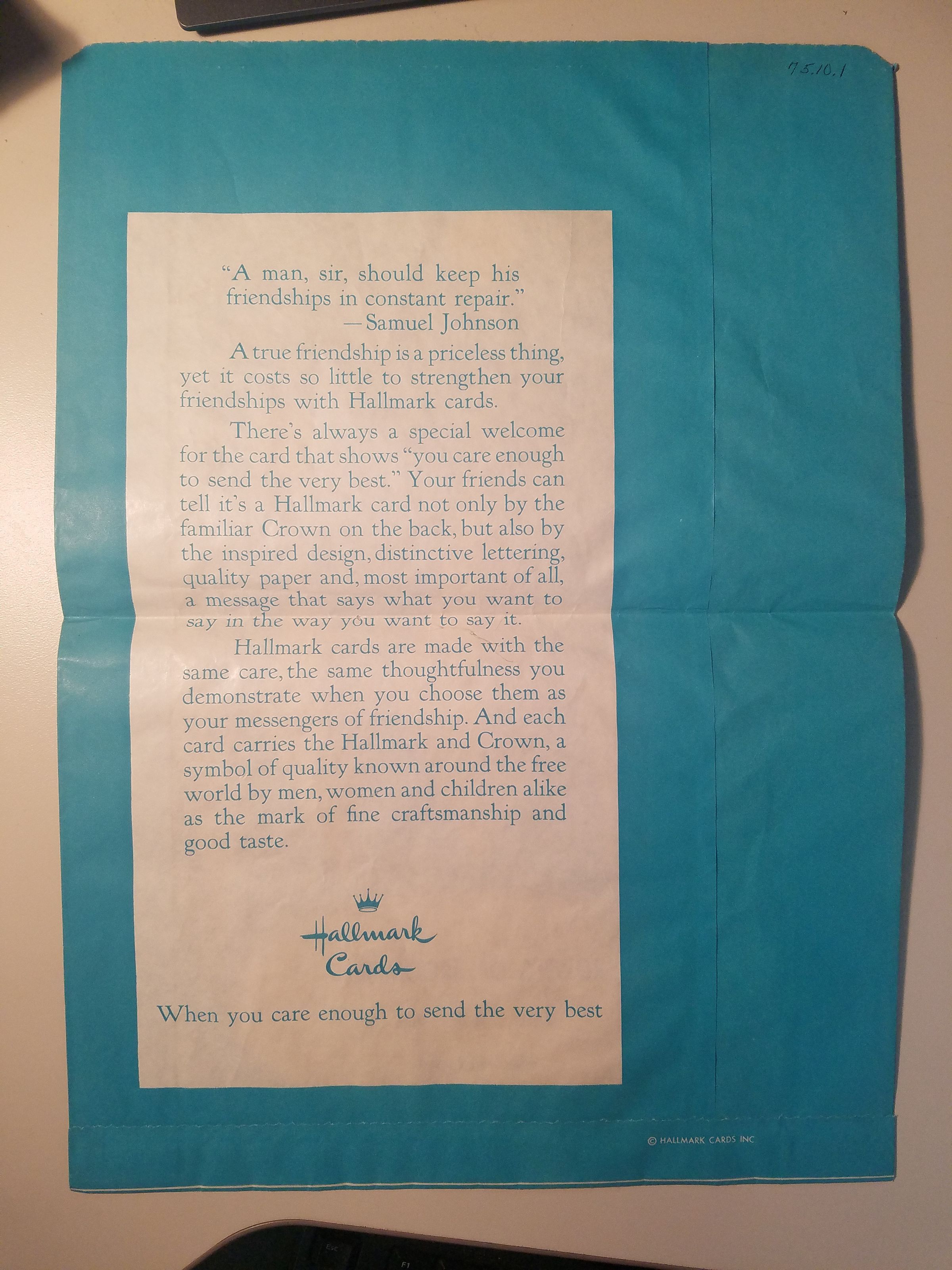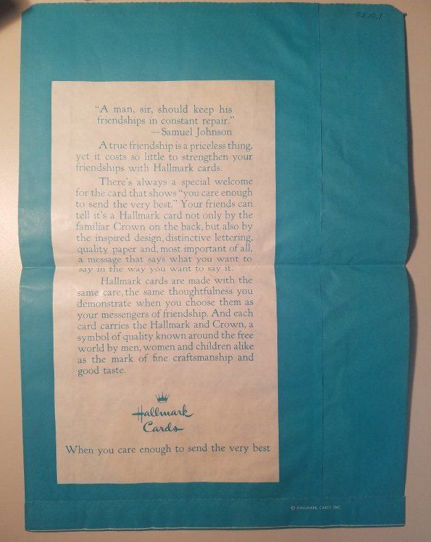 This sack was used by them when they ran Brown's of Broomfield - a store selling paints, cards, & gifts.