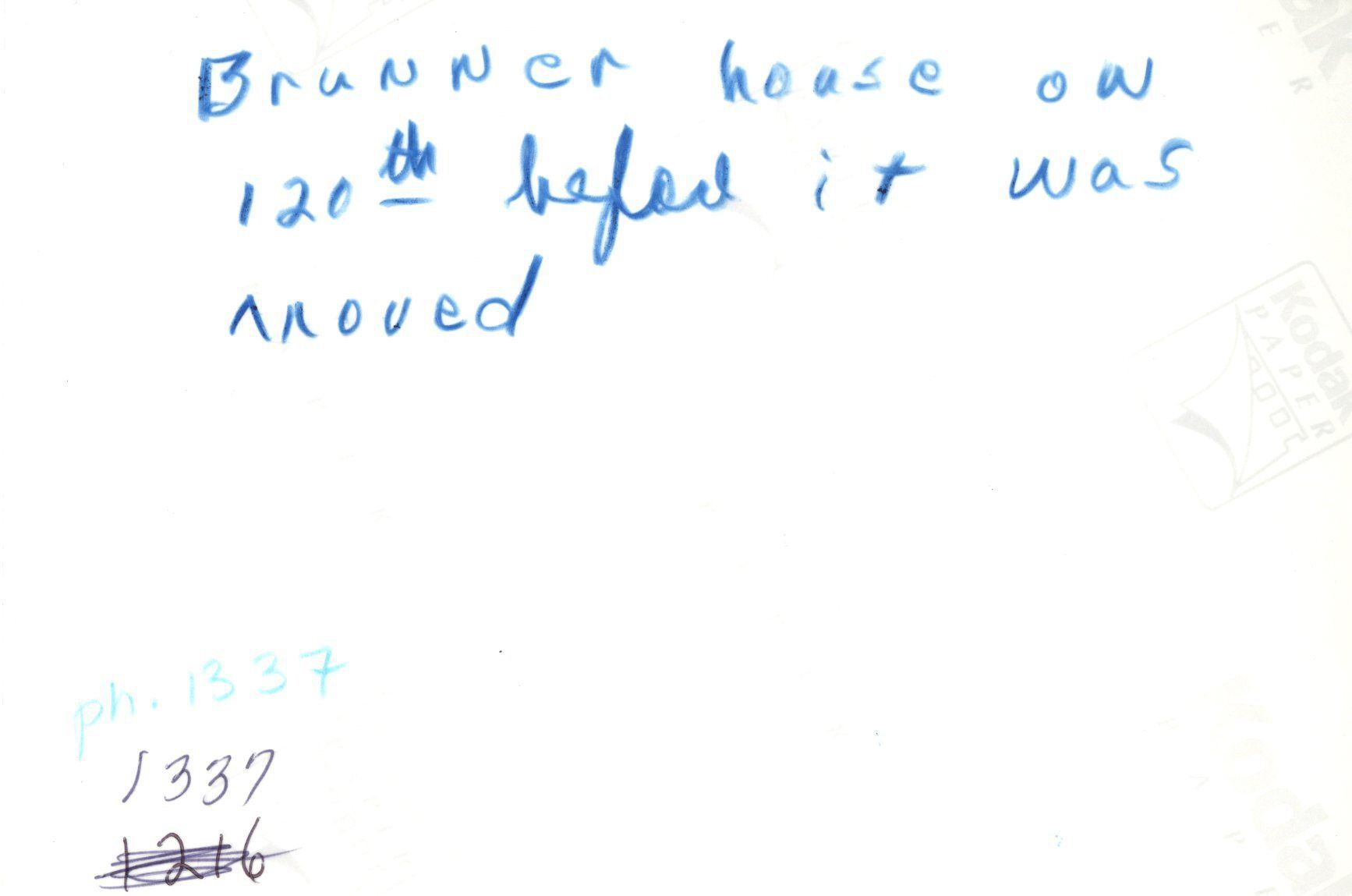 Brunner house on 120th before it was moved. Exterior view from corner of the porch.
