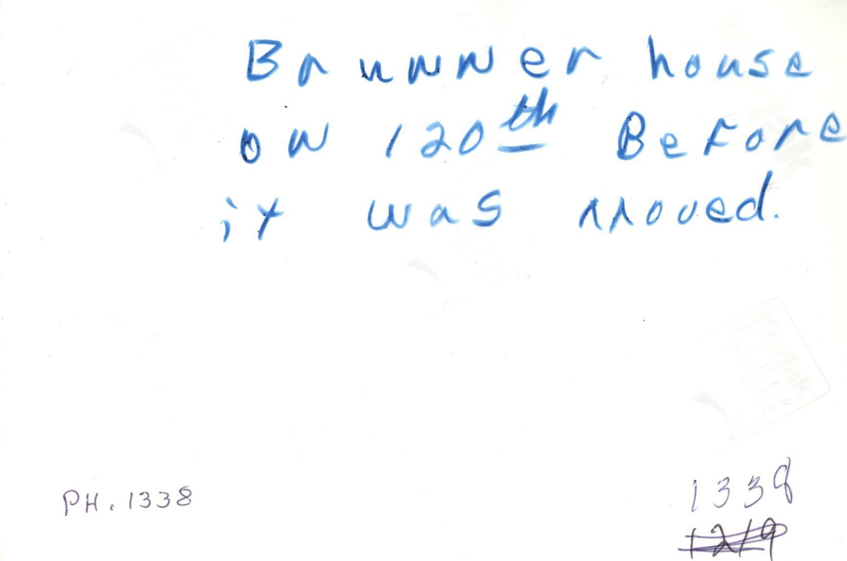 Brunner House on 120th before it ws moved. Exterior.