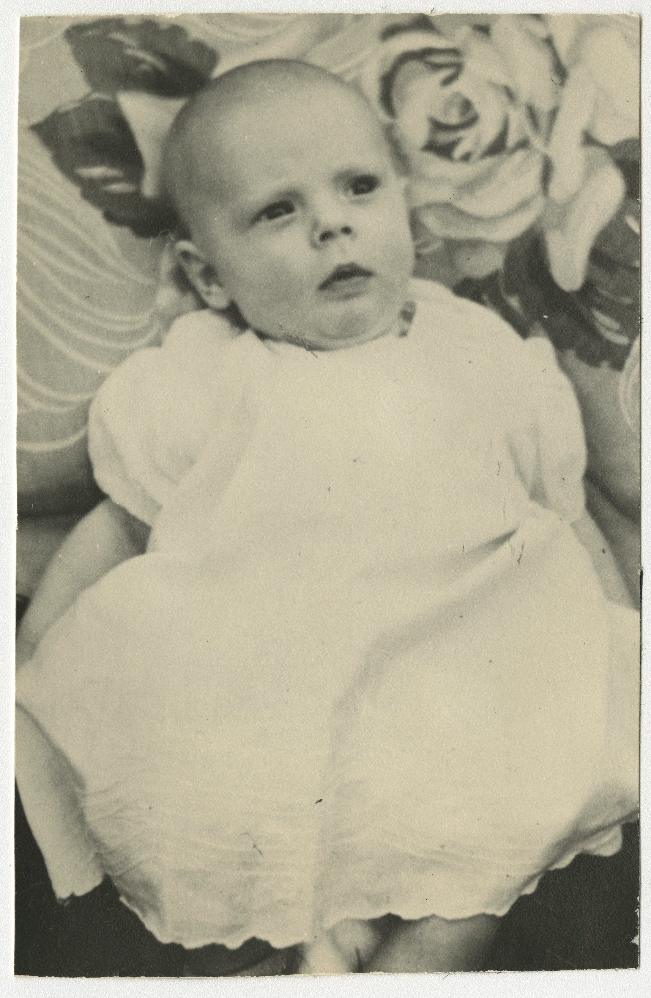 Black and white photograph of a baby in the Brunner family.