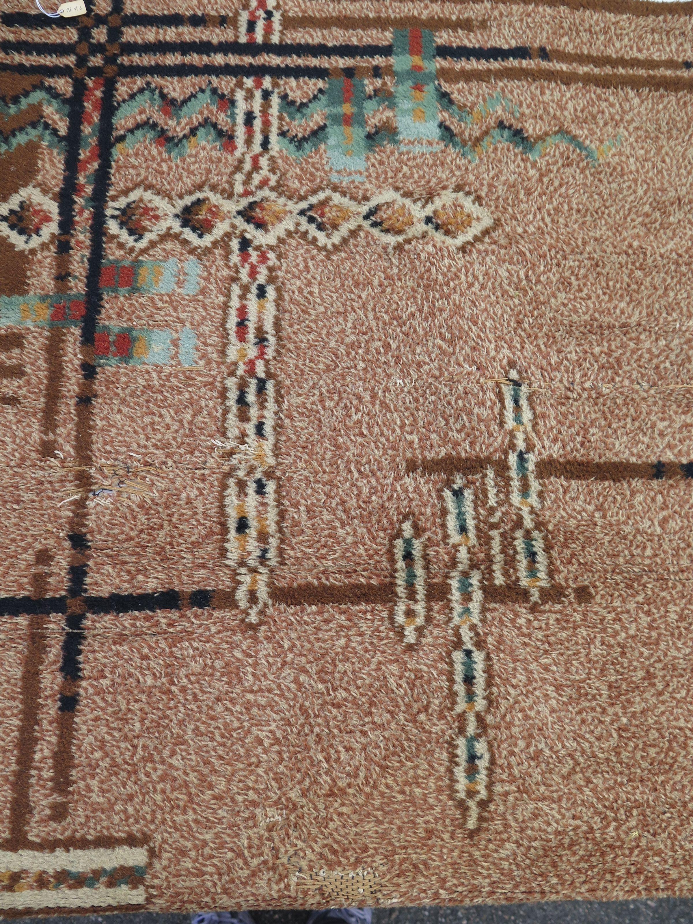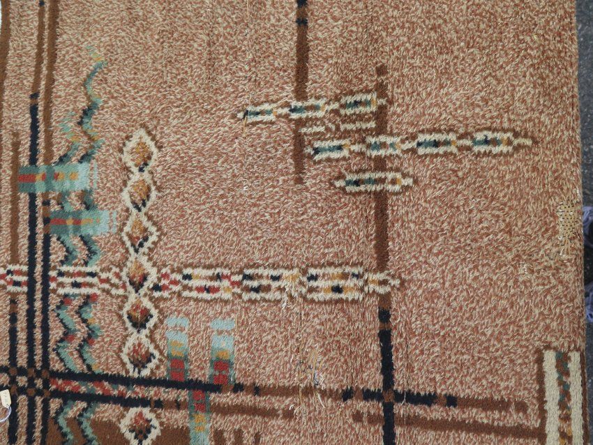 This is a rug made of mostly light brown fabric with an Indian look. The rug measures 26.5" (w) x 42.5" (l).
