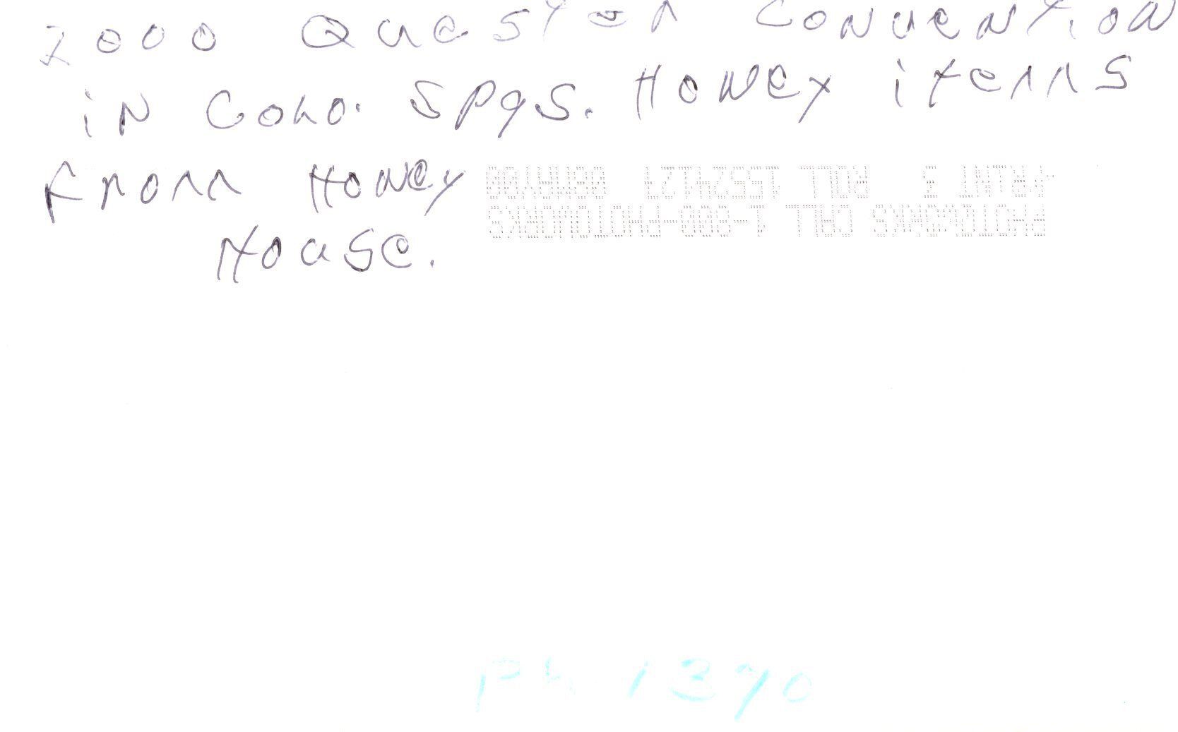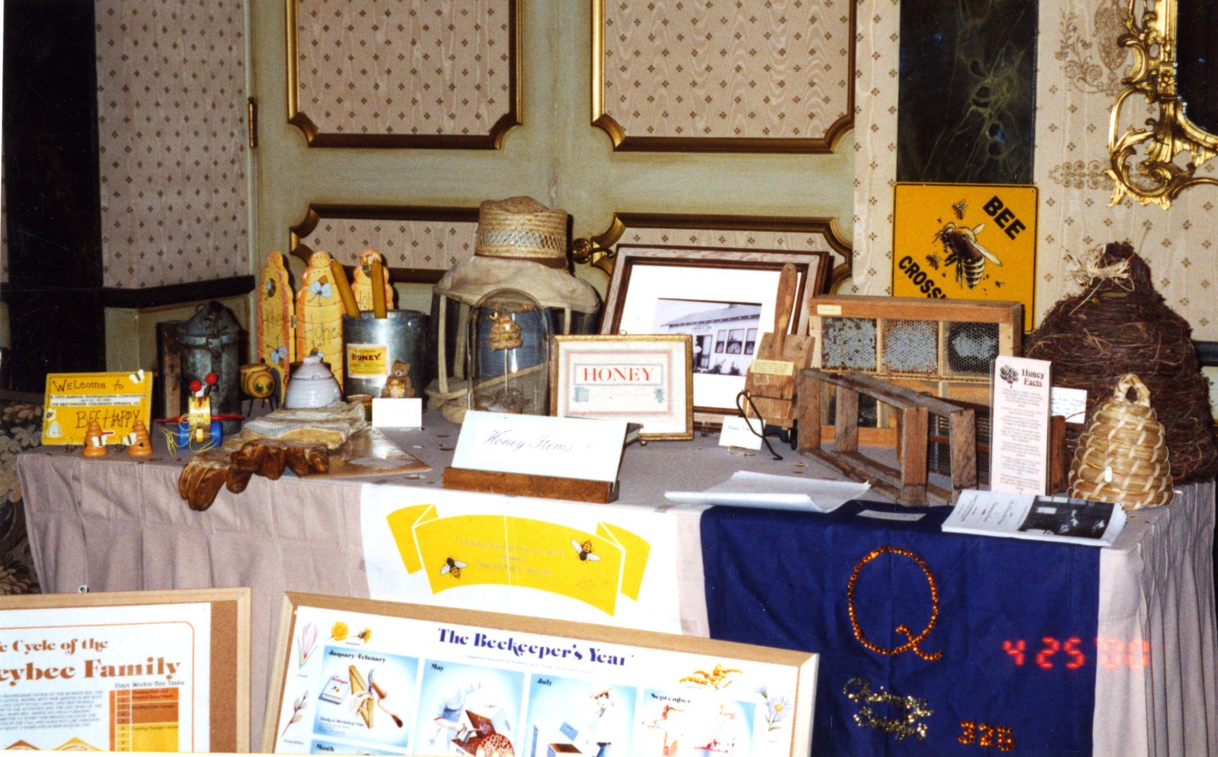 2000 Quester Convention in Colorado Springs. Photo of display table with honey related items from Honey House.