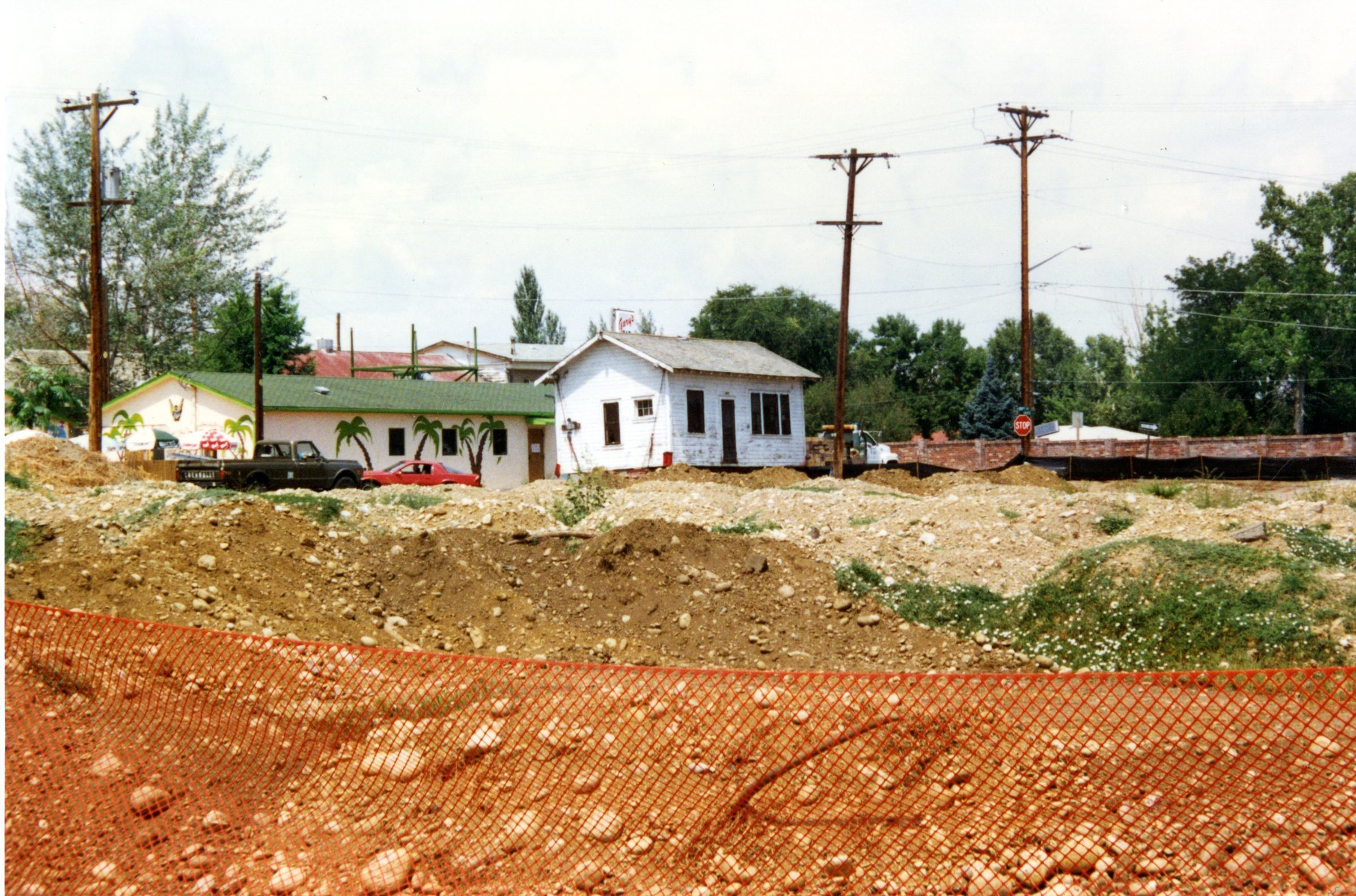 Honey House being moved from 120th street location to Depot Museum site. House being pulled by truck. Behind house are a red car and dark gray pick up truck. Date: August 15, 1996.