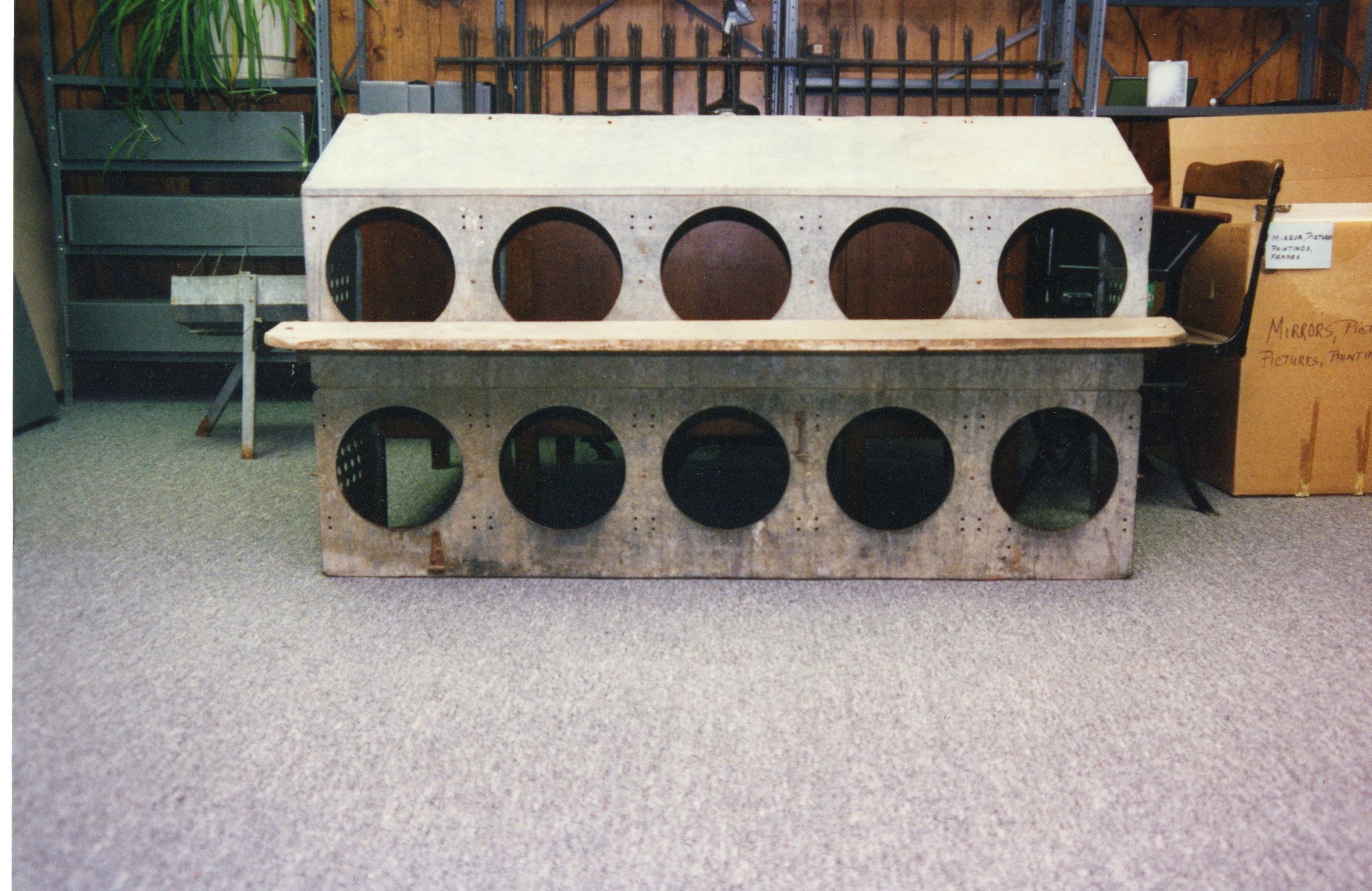 Chicken Coop in Depot Basement? The chicken coop has six nesting on the top and six nesting on the bottom.