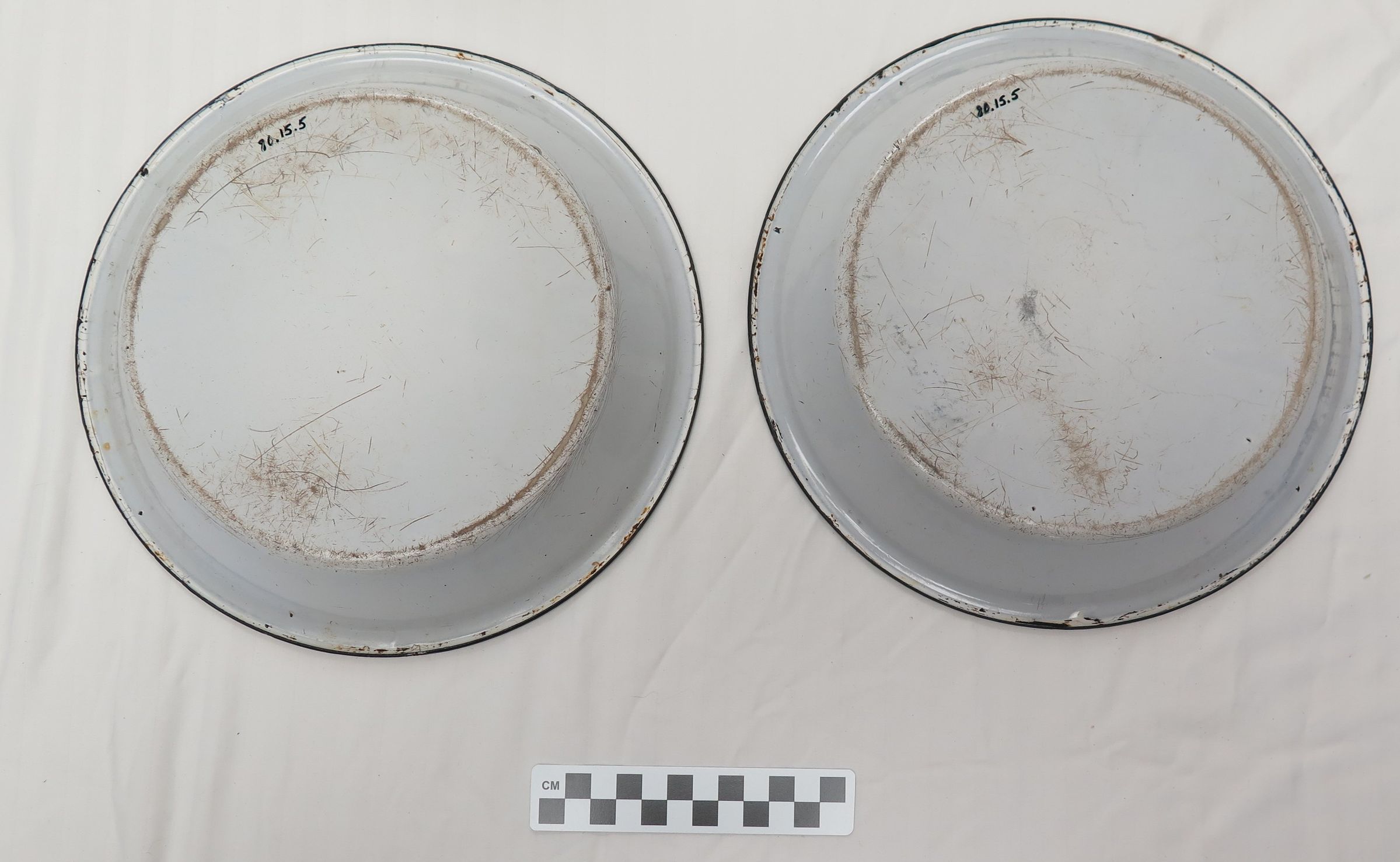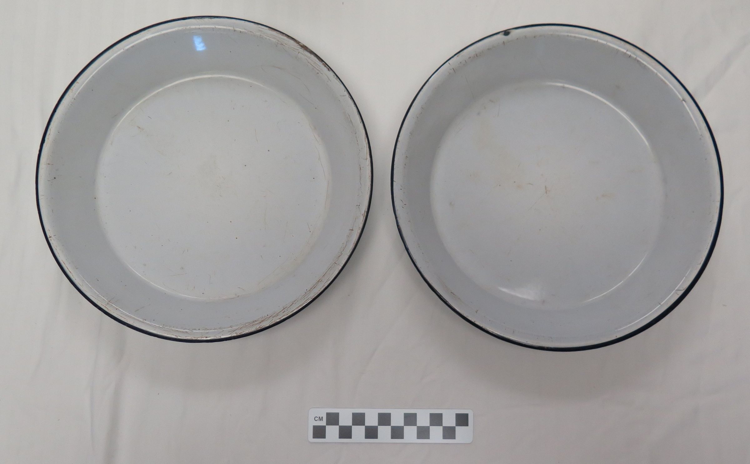These two white porcelain on metal pie pans measure 10"(dia.)