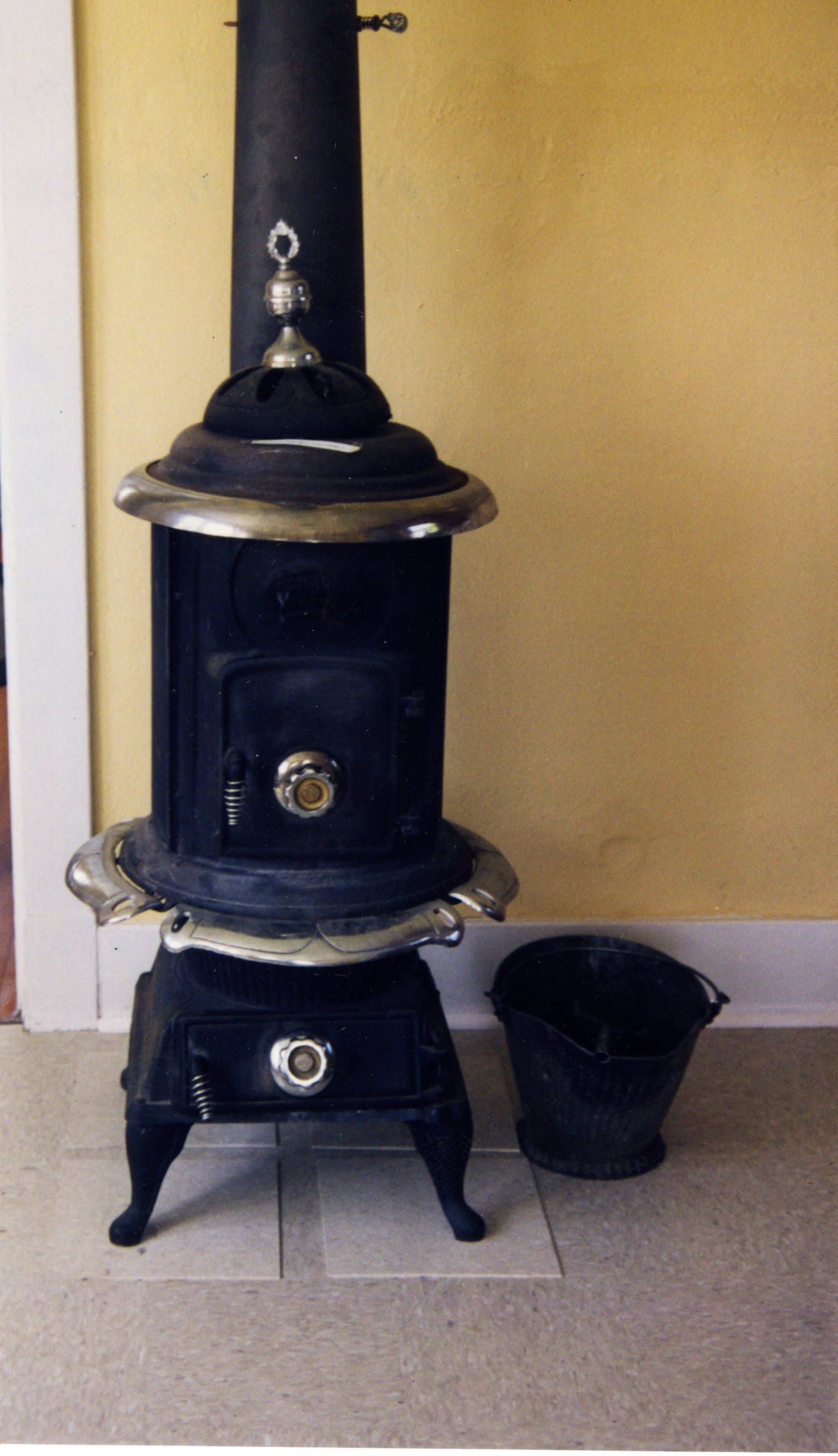 Wood stove in Honey House, Zang Spur Park. Ash bucket.