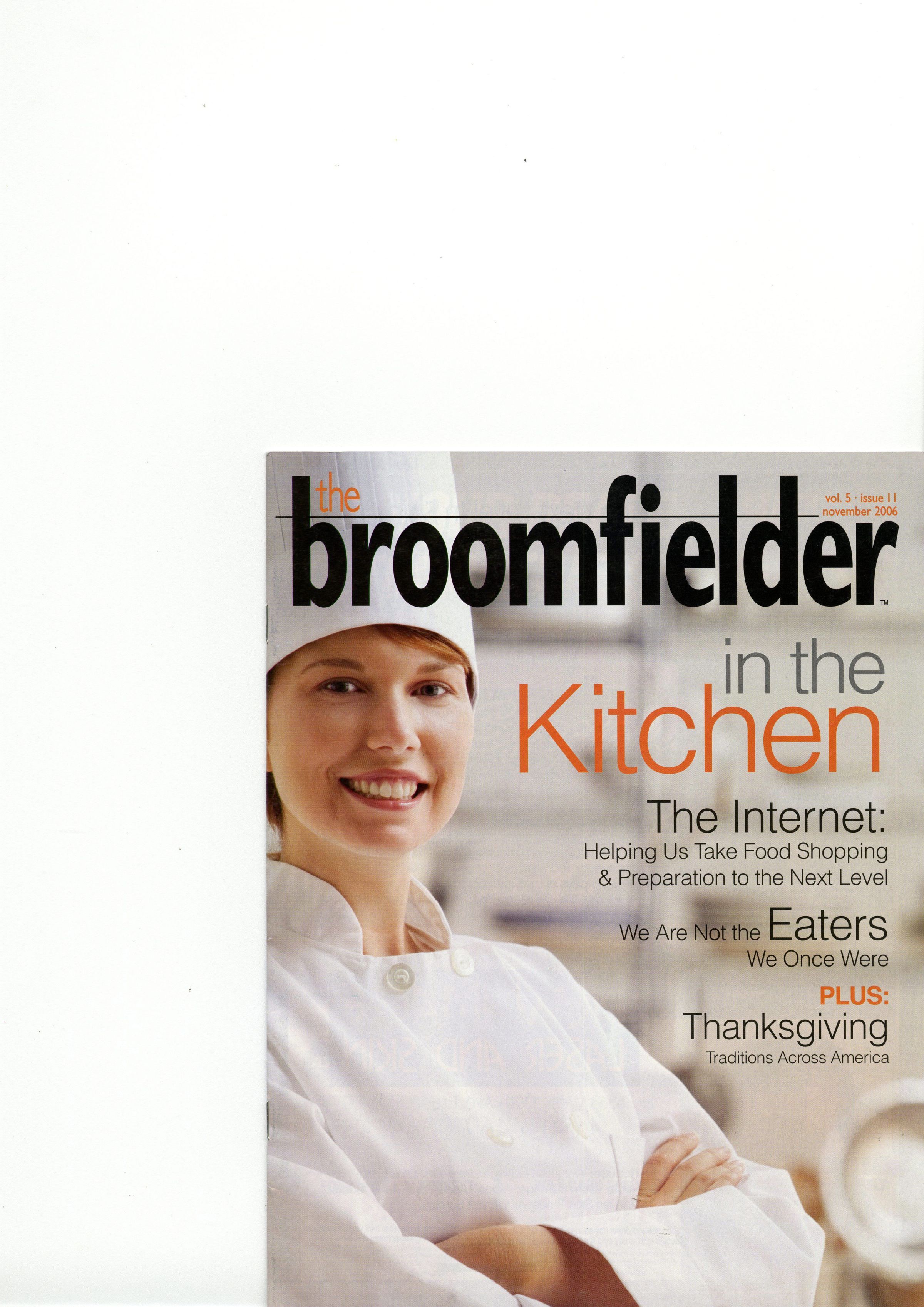 A copy of "The Broomfielder" volume 5 issue 11 from November 2006. Articles include "The Internet: Helping Us Take Food Shopping and Preparation to the Next Level," "We Are Not the Eaters We Once Were," "Thanksgiving Around the World," and "The Cutting Edge: Knives 101."