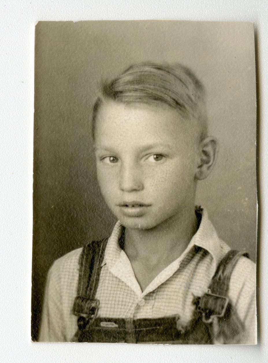 Black and white photograph of a young boy. Probably Lester K. Brunner.