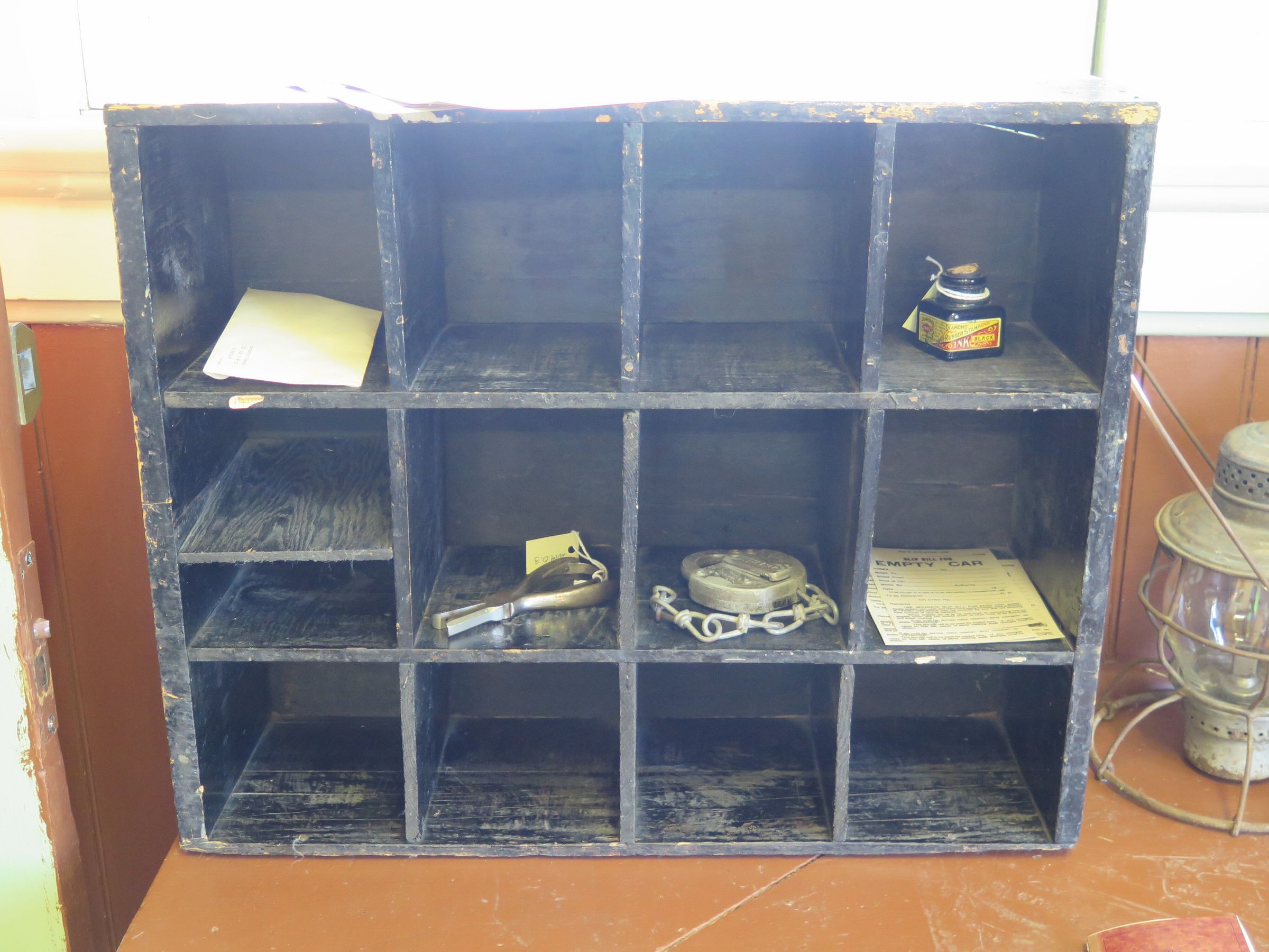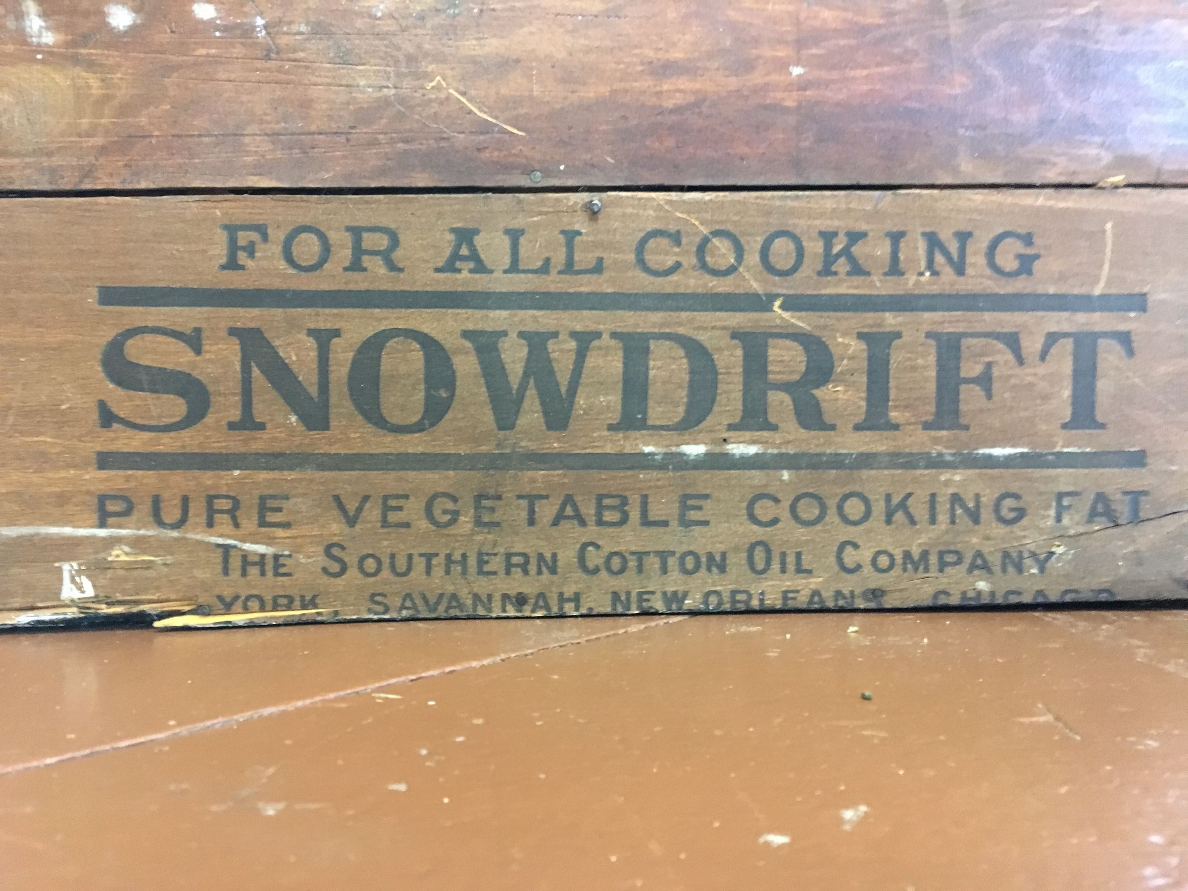 Described on the registration sheet as a "dispatch box" from Jones' Hall this may have been used for sorting mail. Jones' Hall had many functions including serving as a post office. The wood box was made from a crate and painted black on the front and sides. The back of the box has text stamped on it in black ink. The text reads, "FOR ALL COOKING/ SNOWDRIFT/ PURE VEGETABLE COOKING FAT/ THE SOUTHERN COTTON OIL COMPANY/ NEW YORK, SAVANNAH, NEW ORLEANS, CHICAGO." The box has 13 compartments and measures 18.75" (h) x 22.5" (w) x 7.25" (d).Collection