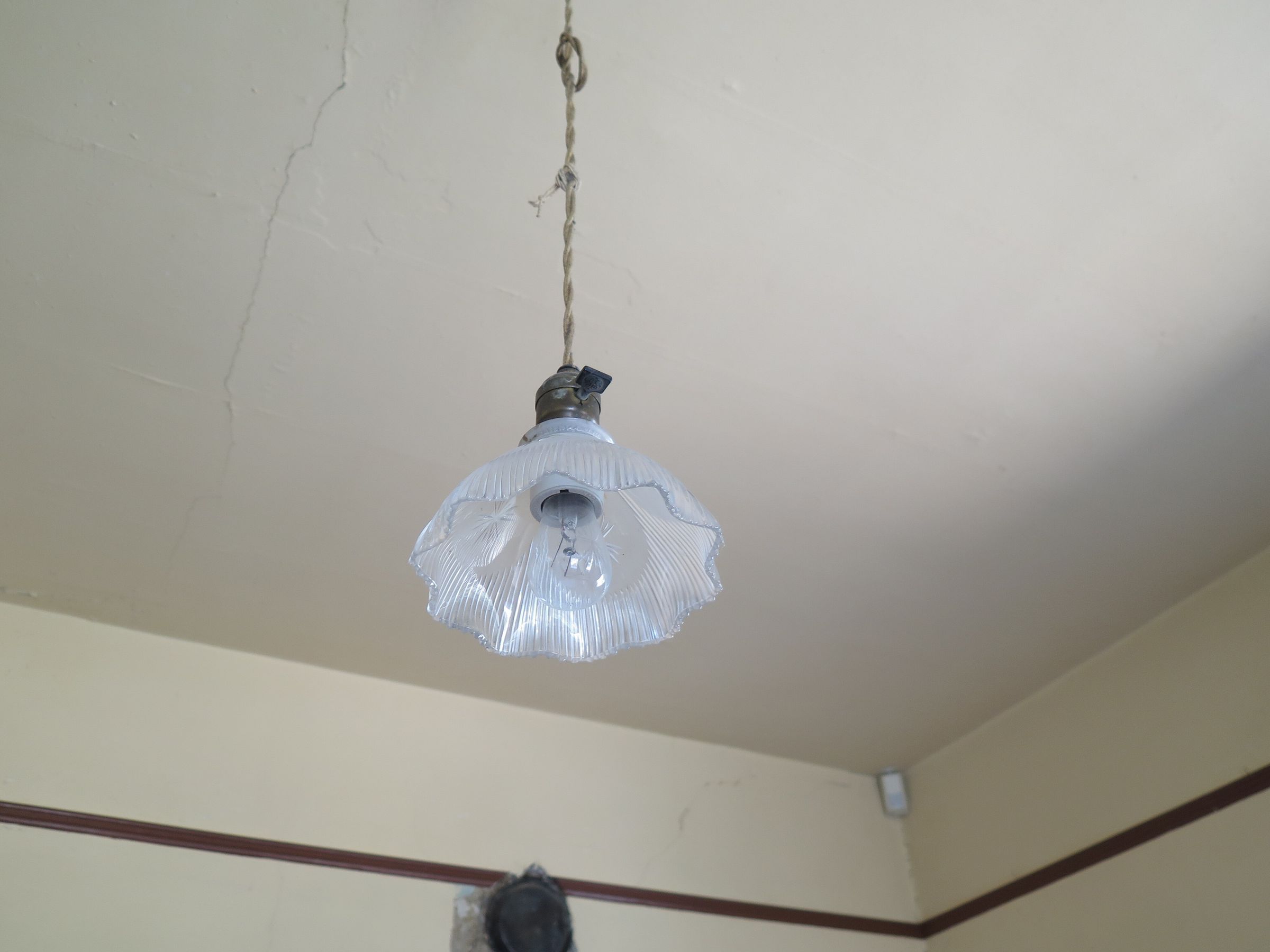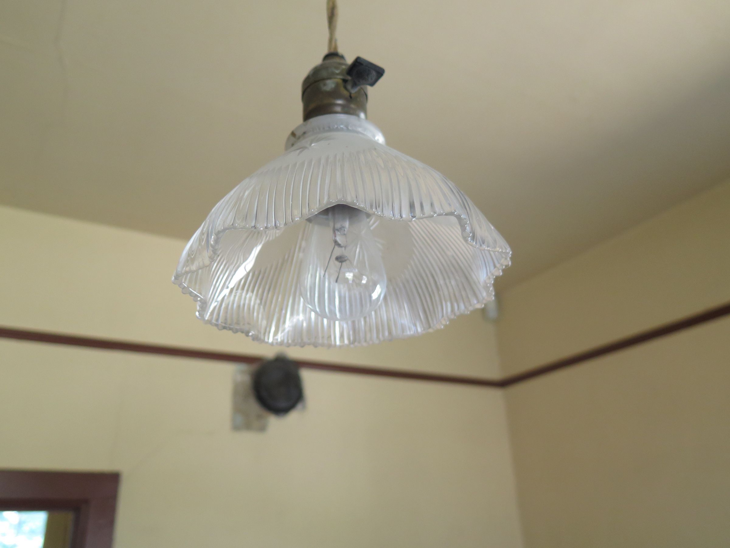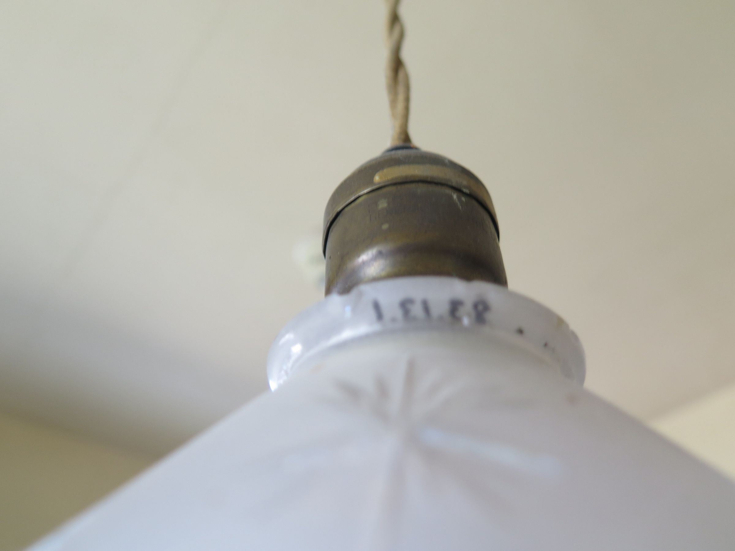This is a clear cut glass light shade for hanging bulbs. The shade measures 4" (h) x 6.5" (diam).