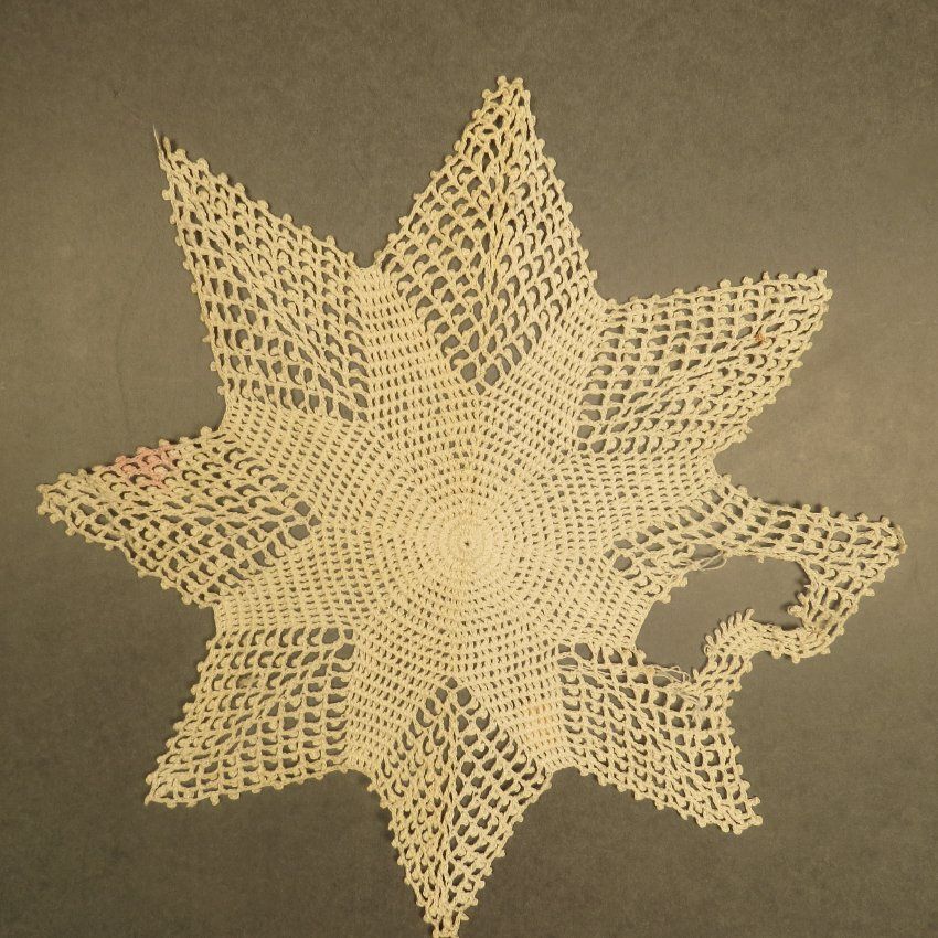 Star shaped doily with 8 points. Doily measures 13" diam.