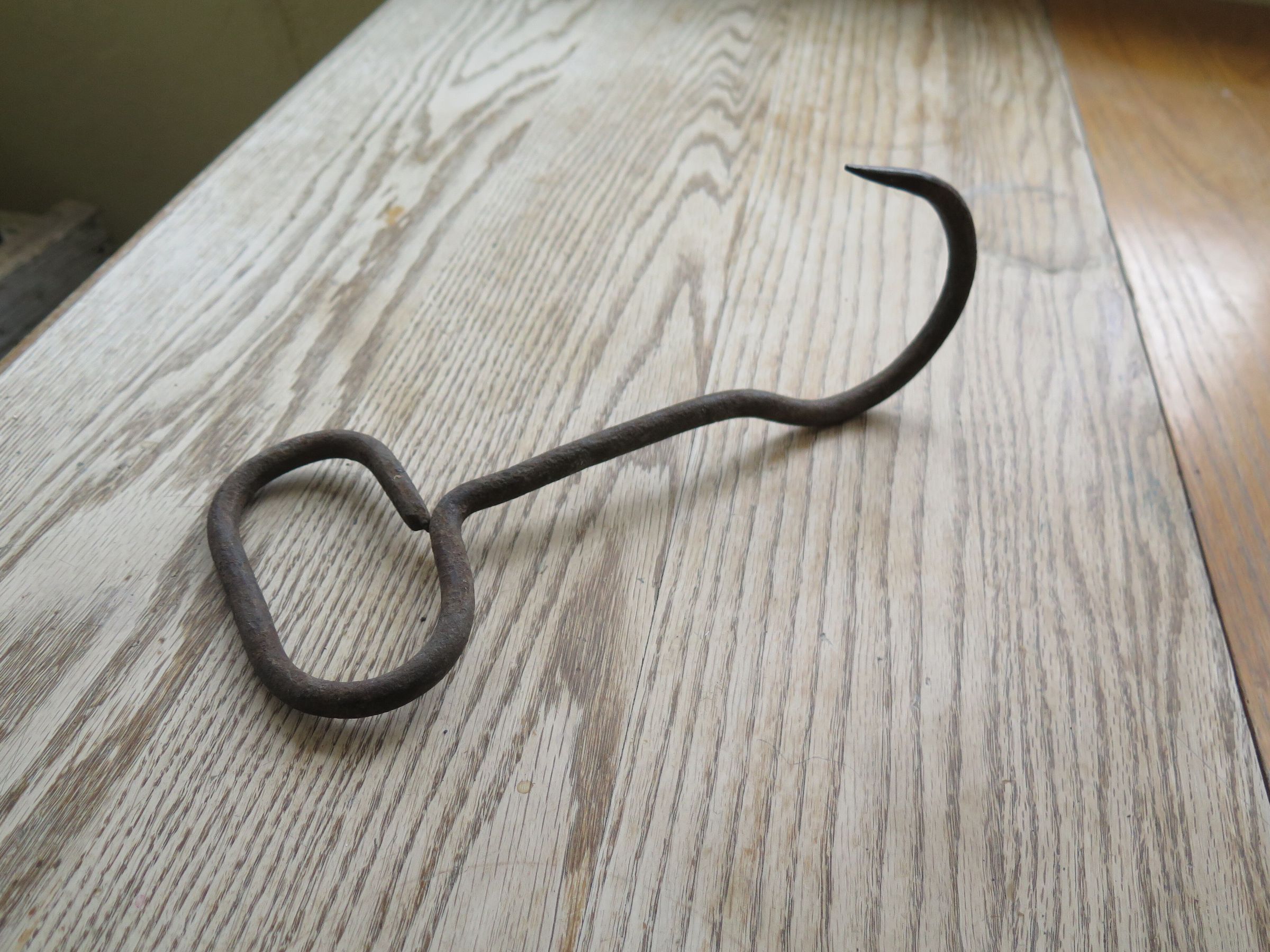 Metal bale hay hook with a metal loop handle. The hook measures 4" (h) x 4.5" (w) x 11" (l).