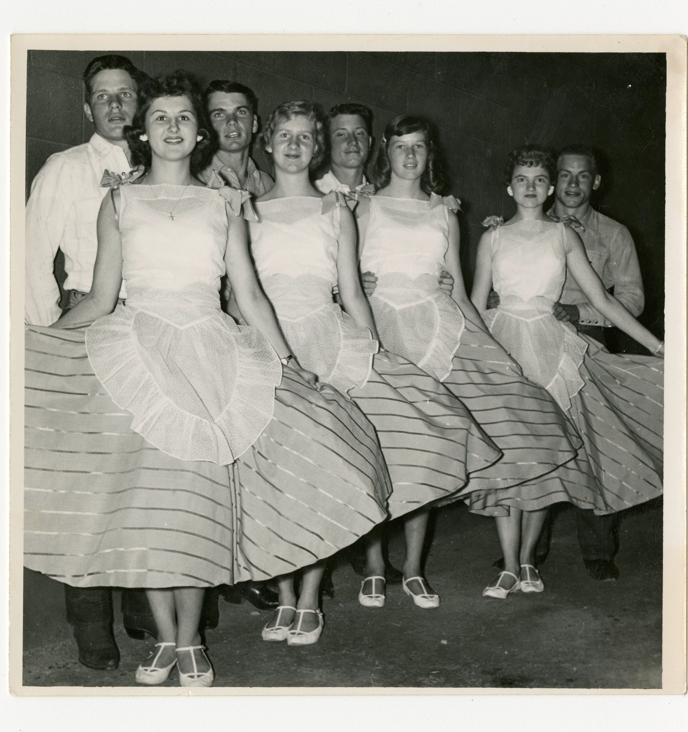 Broomfield Square dancers from the late 1950s. One of the men is probably Lester K Brunner. There are eight people total, four men and four women.