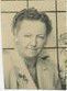 Black and white photograph of a woman with short hair in front of a wall with flowers. The woman is probably Lib Brunner.