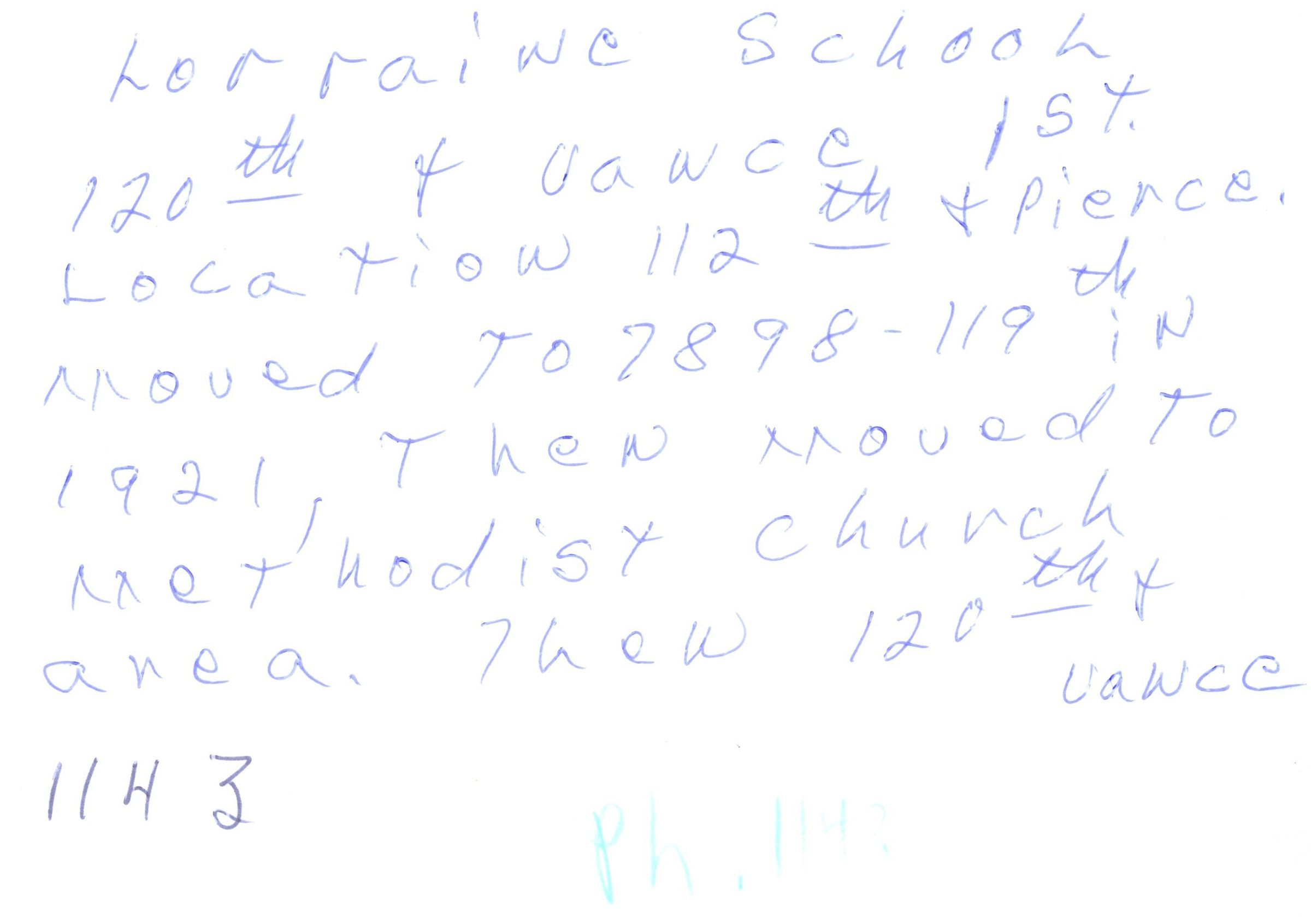 Color photograph of the Lorraine School building at 120th and Vance. The Lorraine School was built in 1885 to serve the students from northern Jefferson County and was named after a crossing stop built by the Denver and Interurban Electric Line. Reportedly, the Lorraine School/school building was moved in 1921 to 7898 119th Avenue, then in 1930, moved to 112th Avenue and Pierce Street. After the school closed, it was sold and moved to 11975 Vance Street. The building was torn down in 2012.Collection