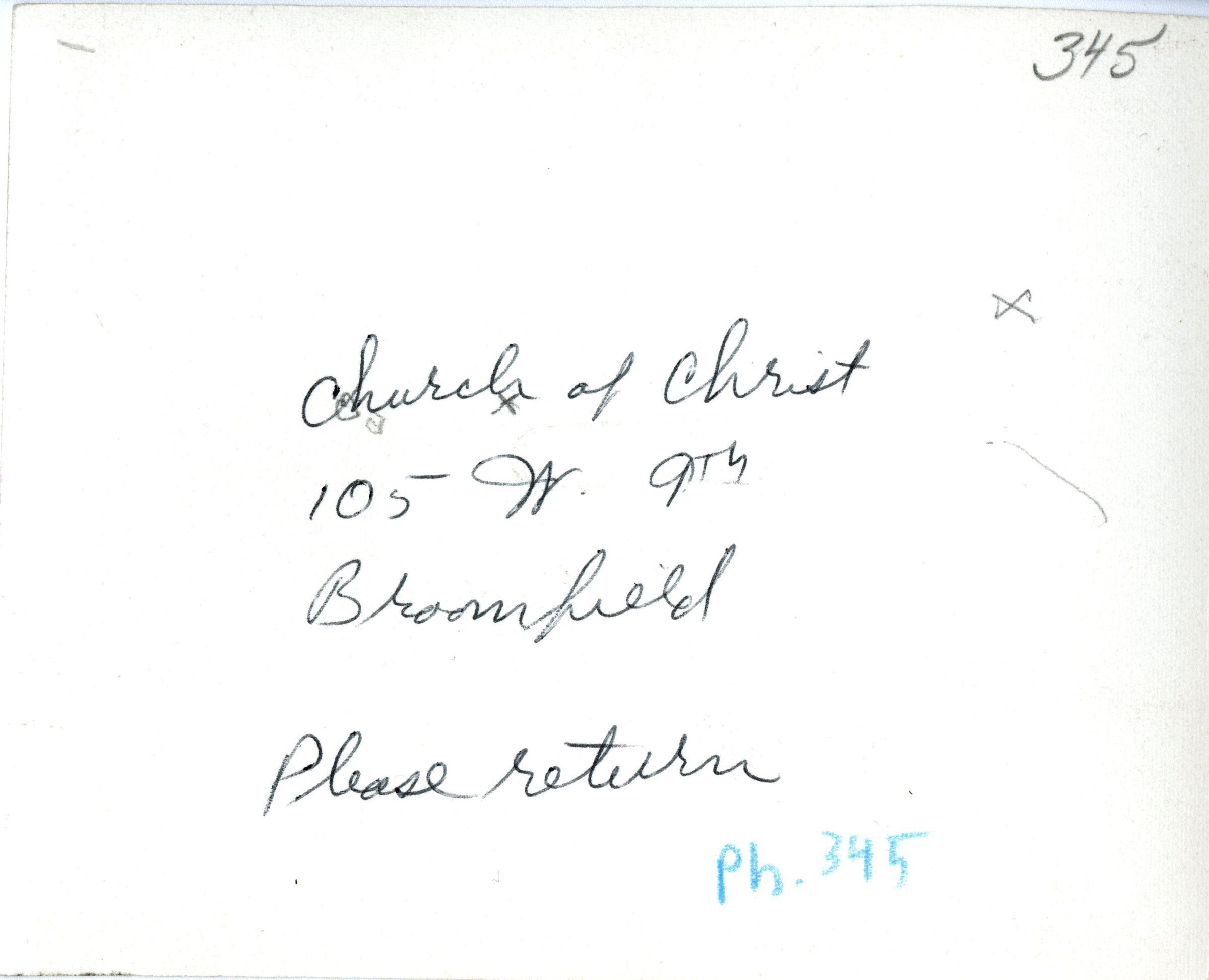 Old Broomfield School, Church of Christ in front. 105 W 9th written on back.
