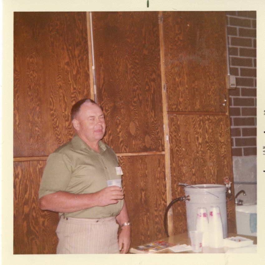 Guy in a green shirt holding a cup.