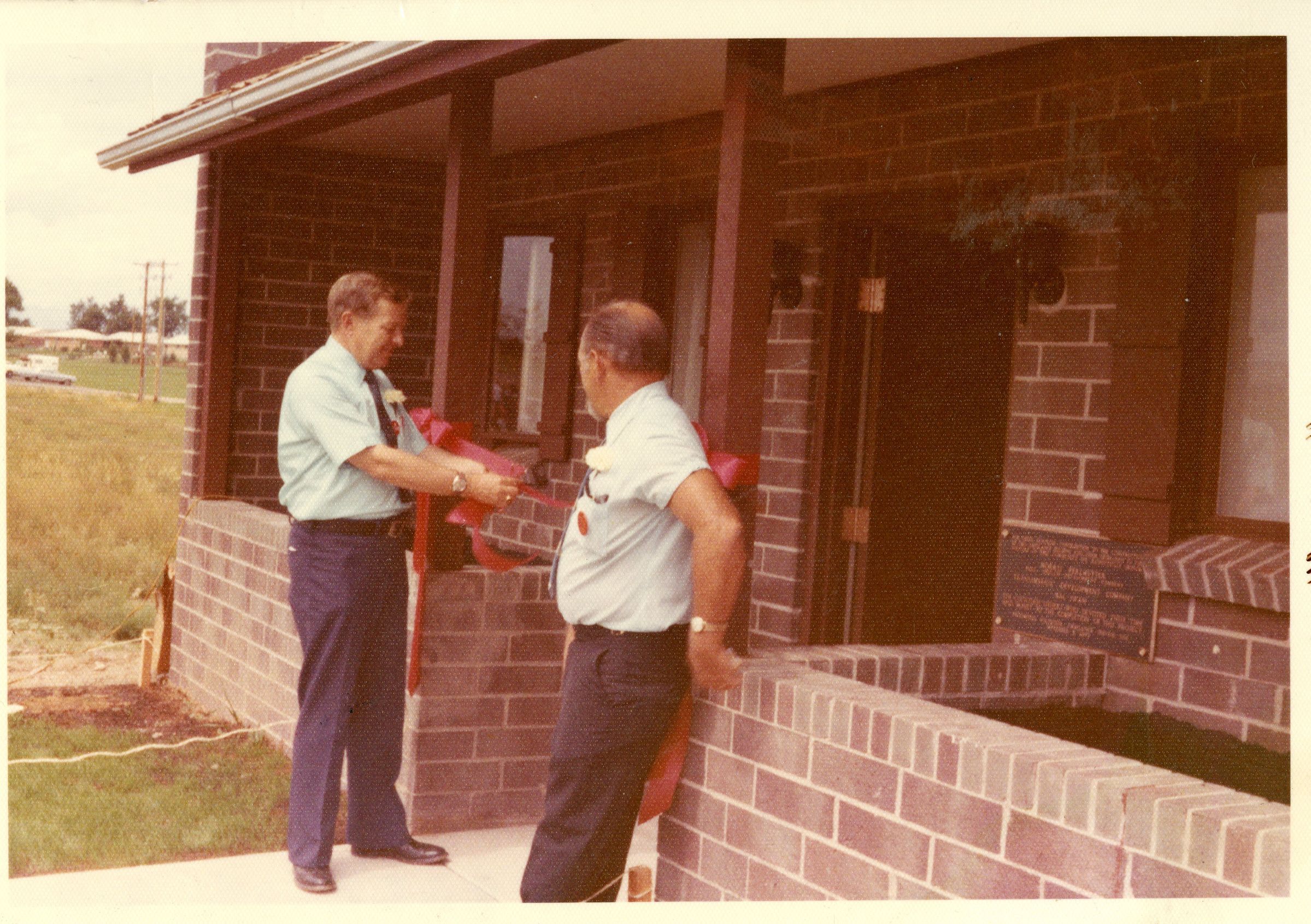 Jim Van Buskirk Renltor and Dave James tying a ribbon on 18 Garden Center, the Broomfield Ambulance Building