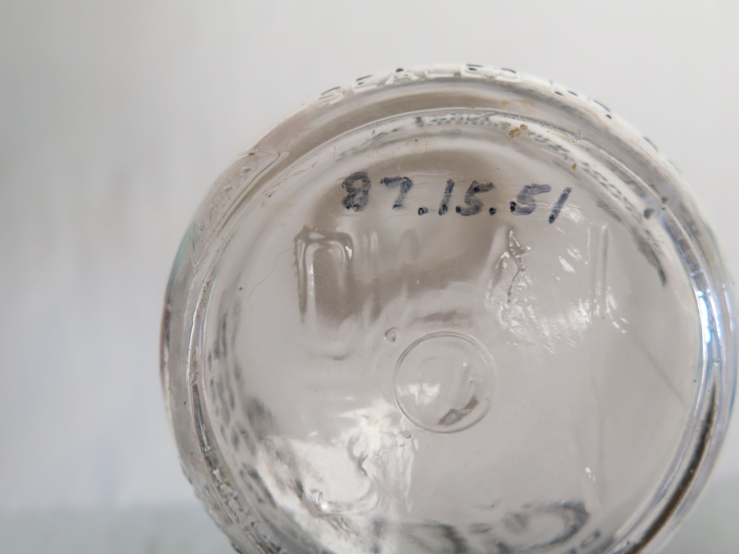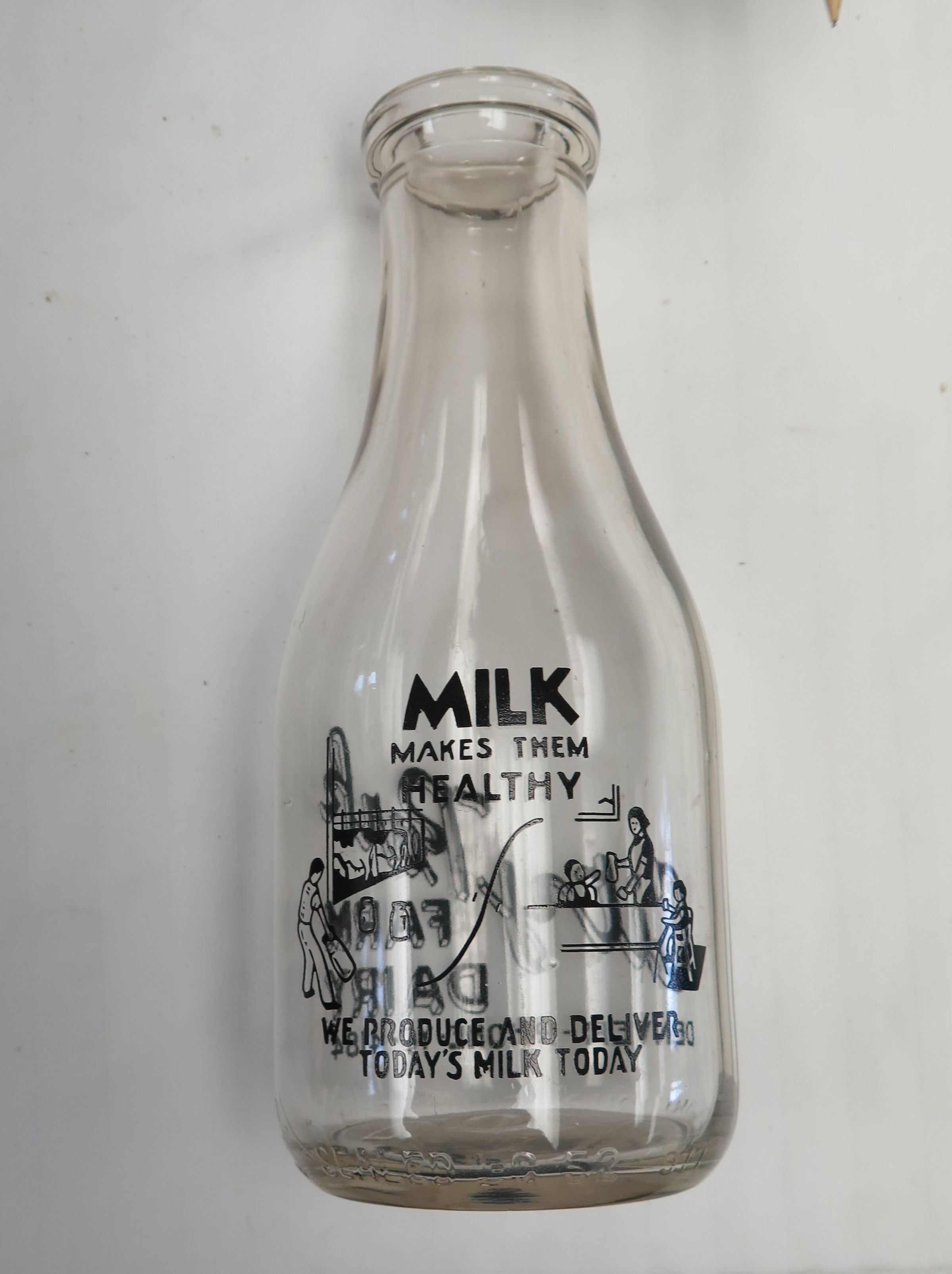 Side of milk bottle.: Origsize: 9.5" (h) x 3.5" (dia; Origformat: Artifact