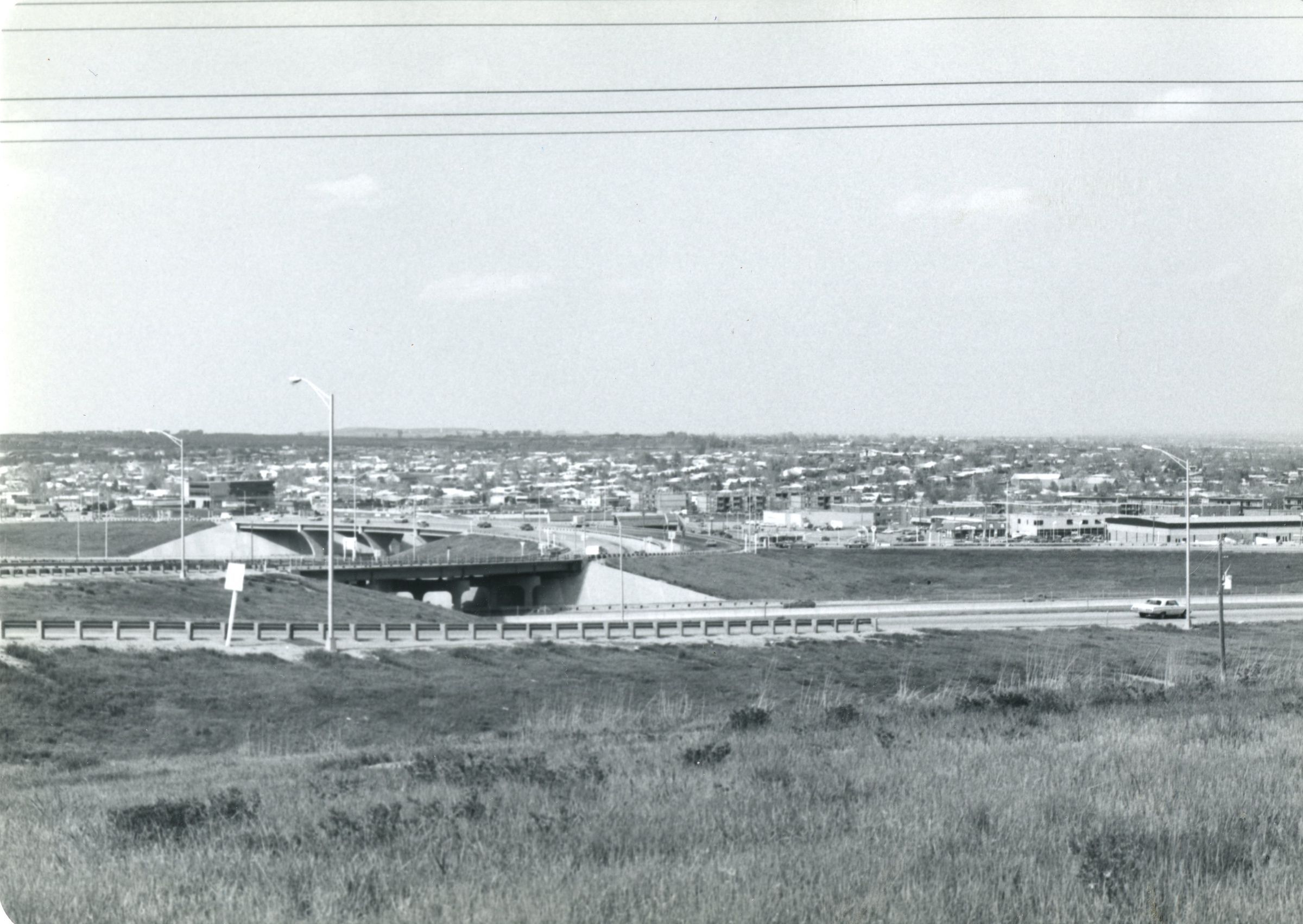 Black and white photo of Old interchange US 287 and US 36 jug handle. This is also overlooking Shep's grave.Collection