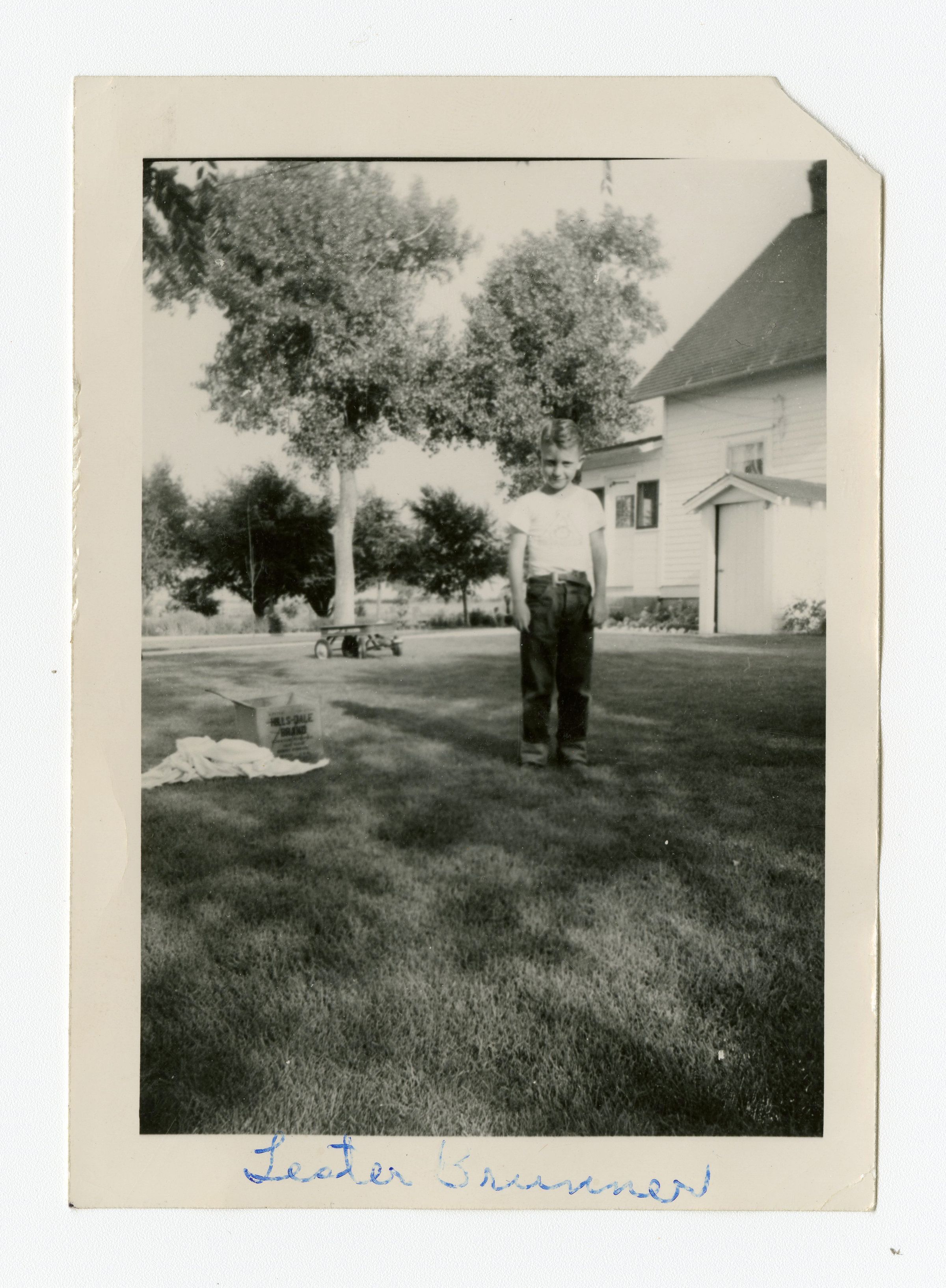 Black and white photograph of Lester K Brunner. Probably near the Brunner farmhouse.
