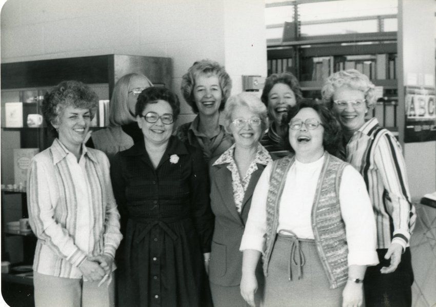 Several librarians from 12 garden center standing together. Mary Jane Bailey is pictured 2nd from the left, in the front.Lexicon