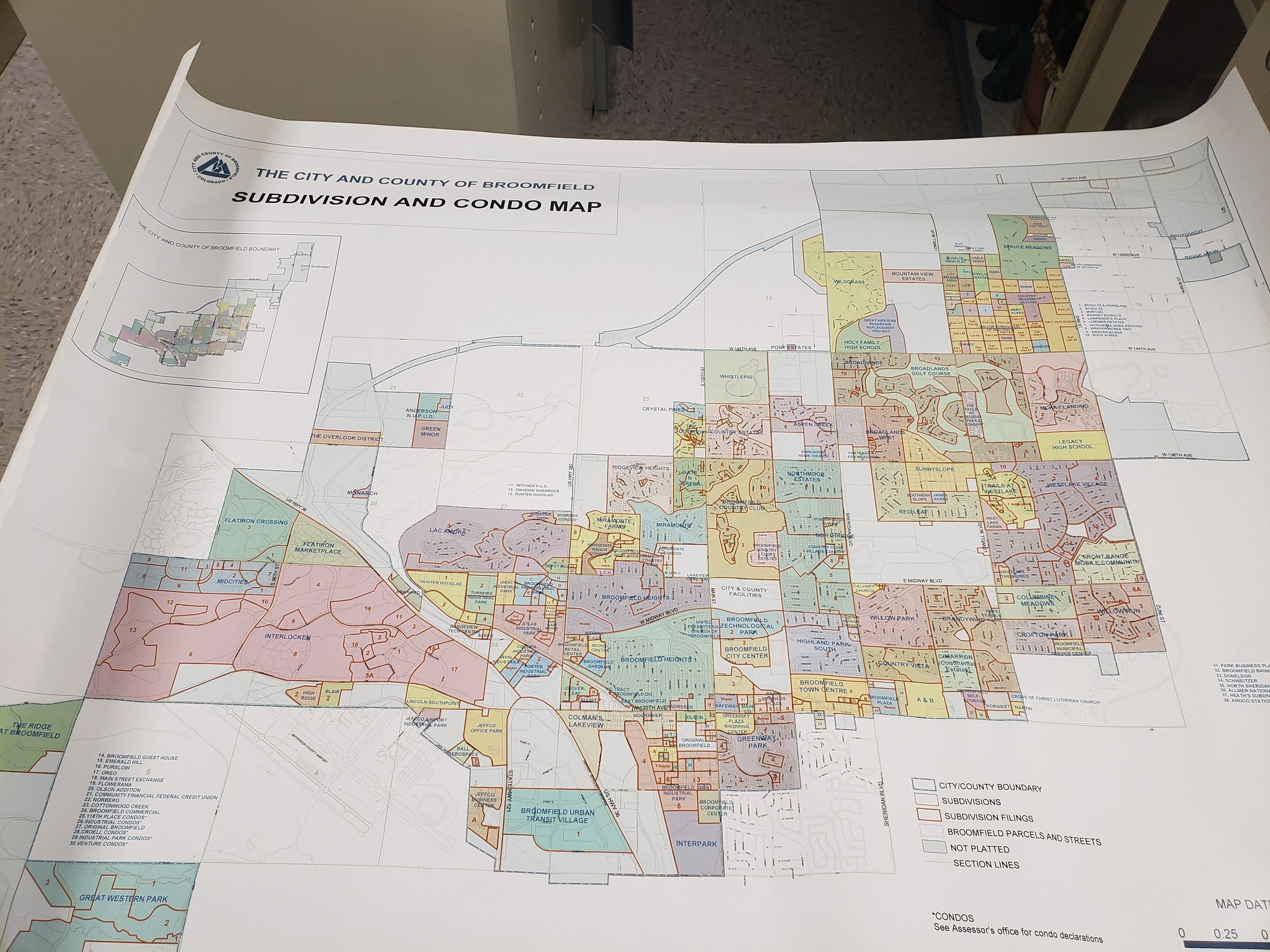 map showing the subdivisions of the city and county of Broomfield in 2002.
