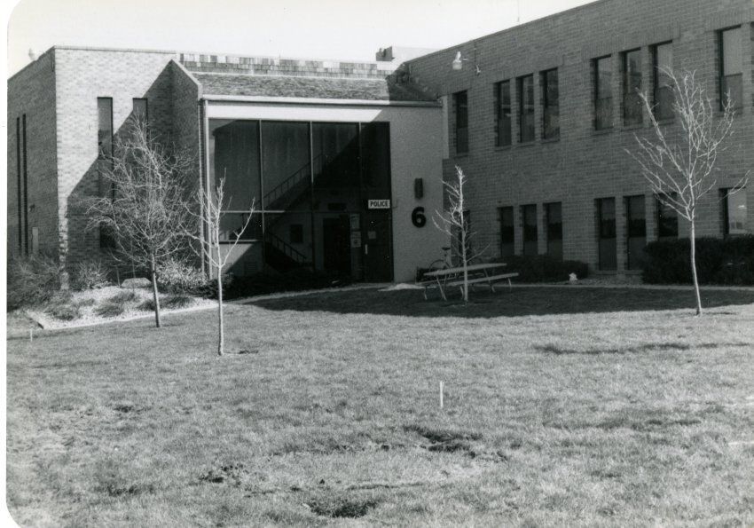 Old Broomfield Police Station at 6 Garden Center. Young trees in yard.Collection