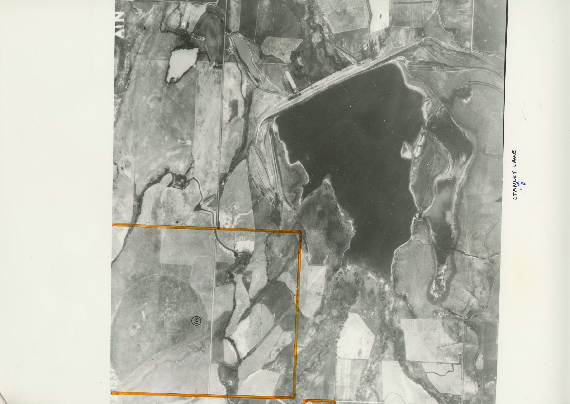 Item is a black-and-white aerial photograph of Standley Lake taken on July 22, 1937. The code "AN 48 71" is at the top right corner. Some sections of the map are numbered, and their borders are highlighted by an orange marker. The lake in the photo is labeled Standley Lake on the border with black pen. Attached to the map by a piece of red ribbon is a notice from the General Services Administration from the National Archives and Record Service confirming that the document is correct. It was signed by Charles E. Taylor, Acting Chief at the Center for Cartographic and Architectural Archives, on November 19, 1980. This paper is also marked with a bright orange seal.Photograph Details