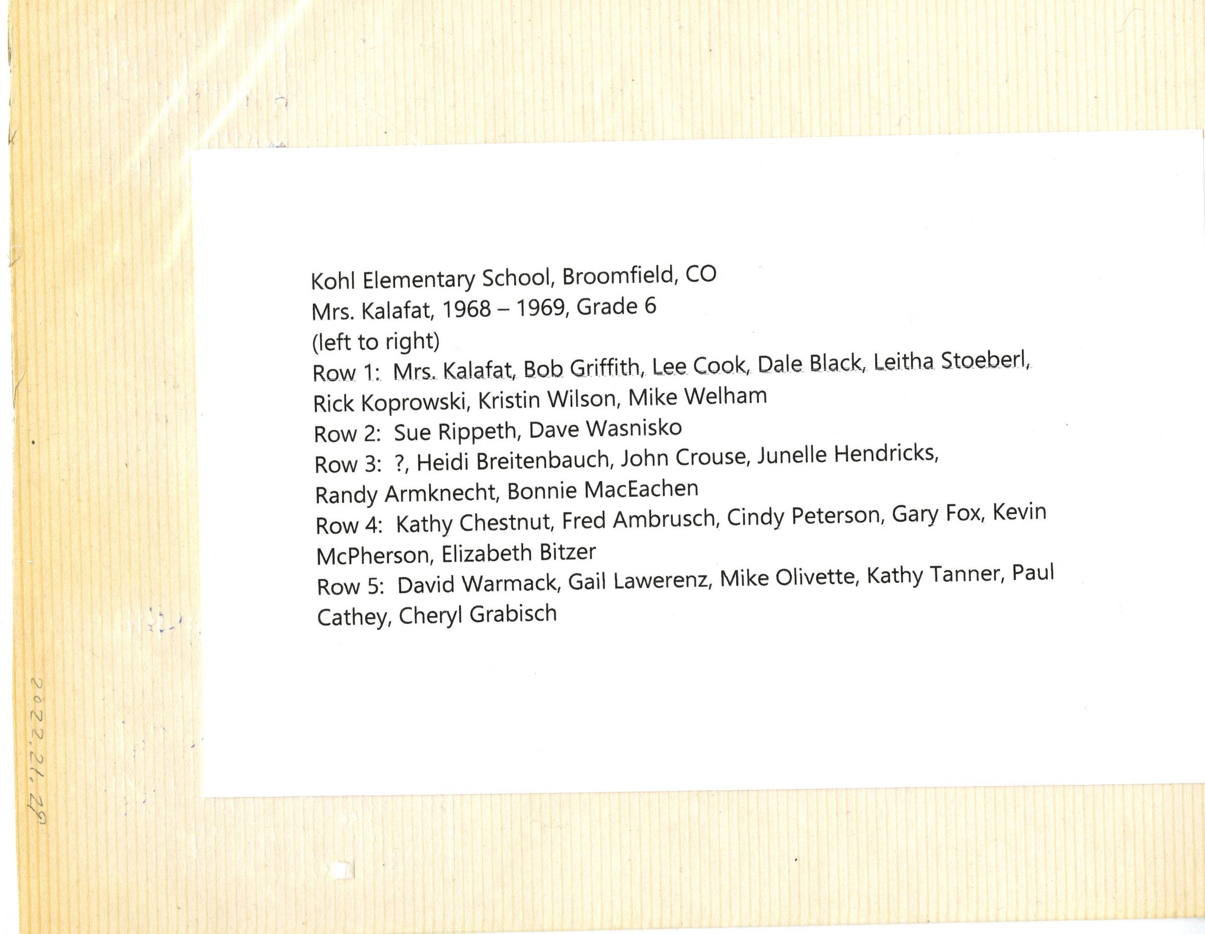 Kohl Elementary School 1968 - 1969 Mrs. Kalafat - Grade 6 Class PhotoCollection