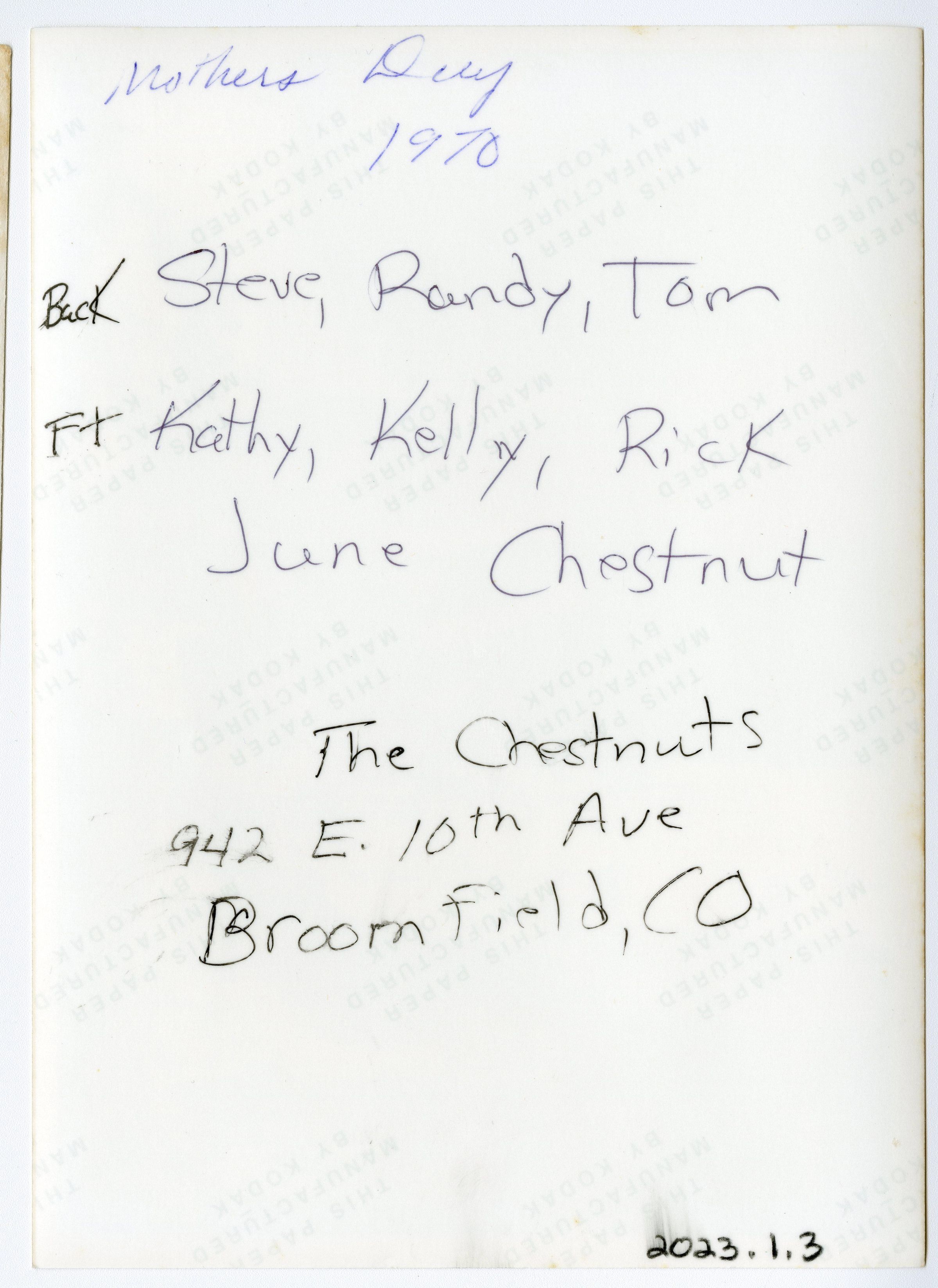 Chestnut Family Photo, Mother's Day 1970Entry/Object ID