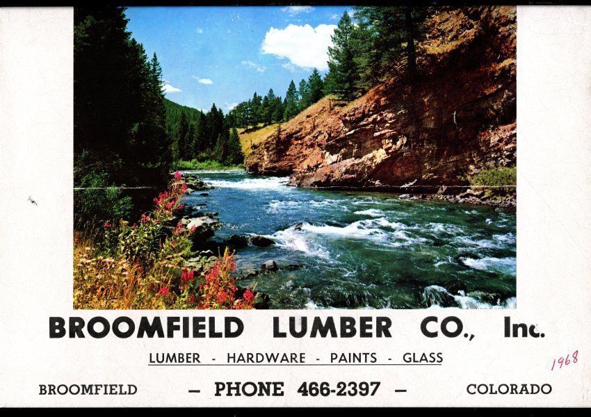 Broomfield Lumber Company calendar. The front cover has a picture of the Gallatin River. Almost all pages have handwritten notes.