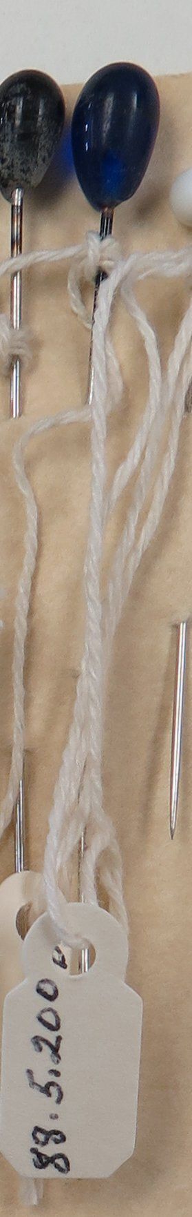 This is a metal hatpin with a blue bulb-shaped head.