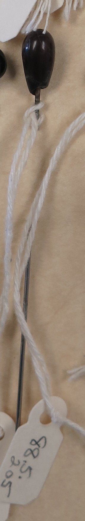 This is a metal hatpin with a brown bulb-like head.