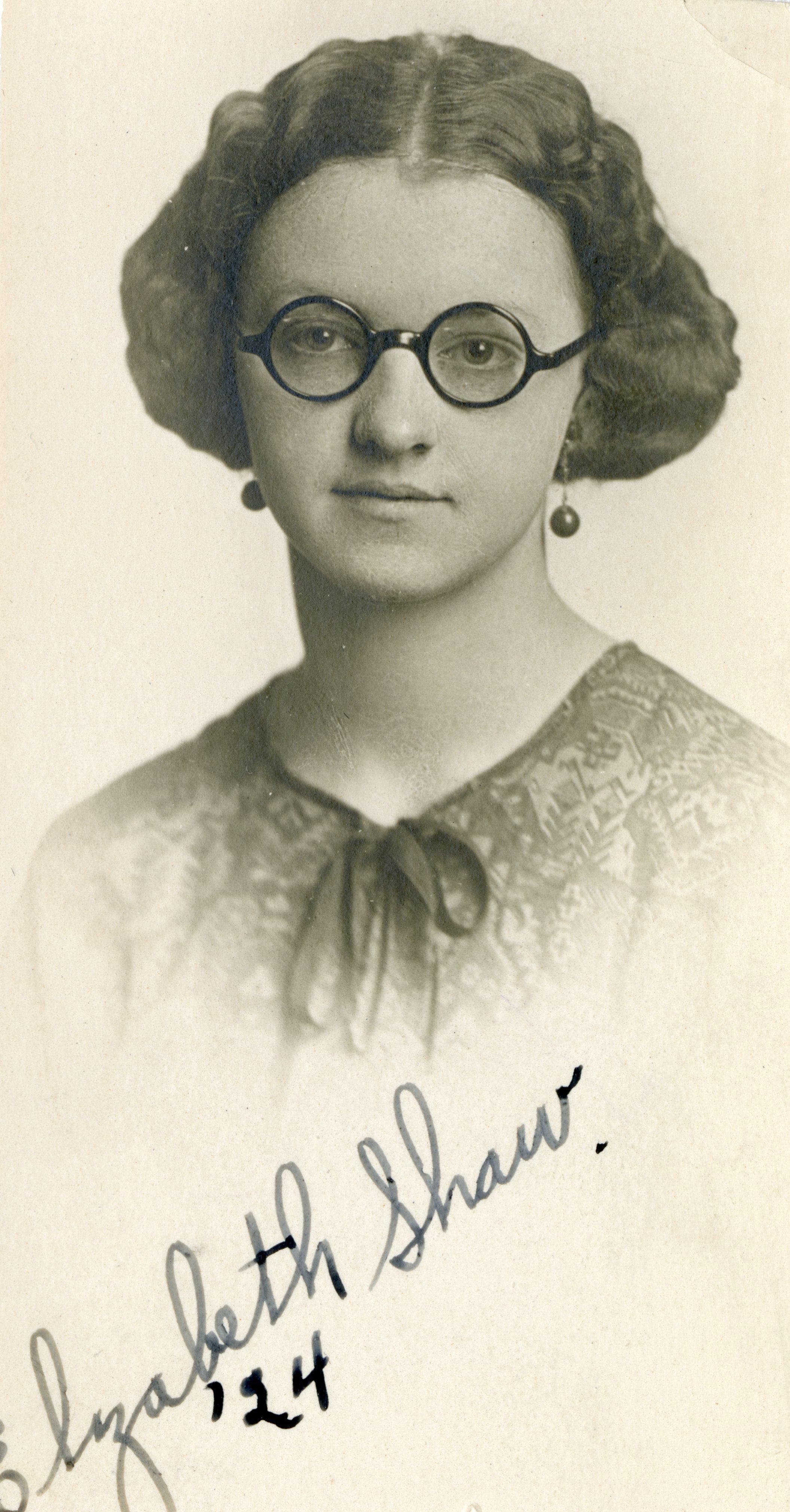 Photograph of Nancy Elizabeth Shaw. She is wearing round black glasses.
