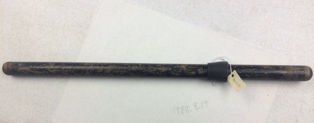 This is a black wooden Police nightstick. The nightstick measures 25.5" (l) x 1.25" (dia).
