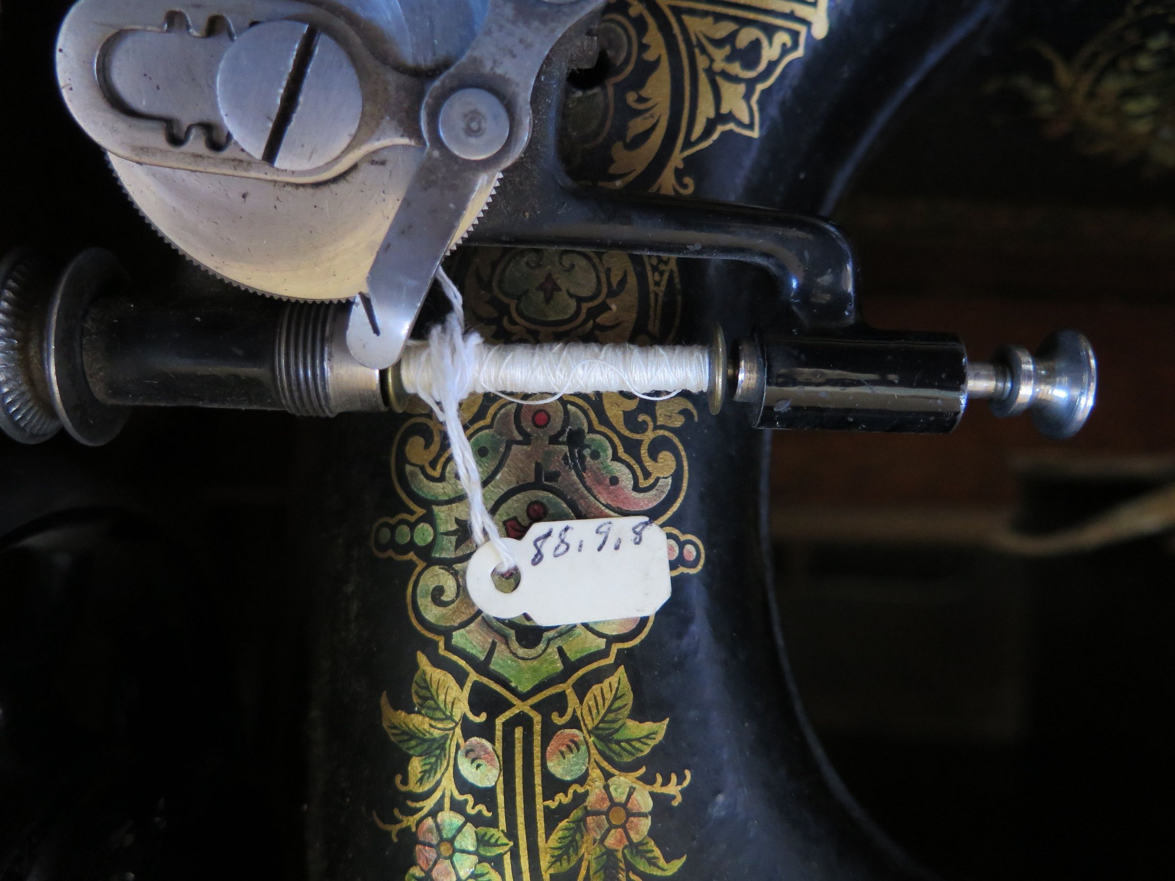Side of bobbin with thread.