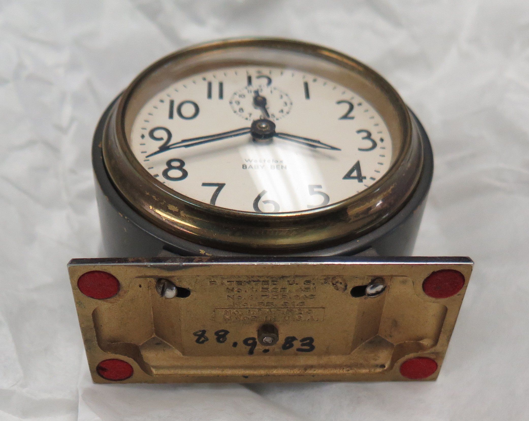 Front of alarm clock.