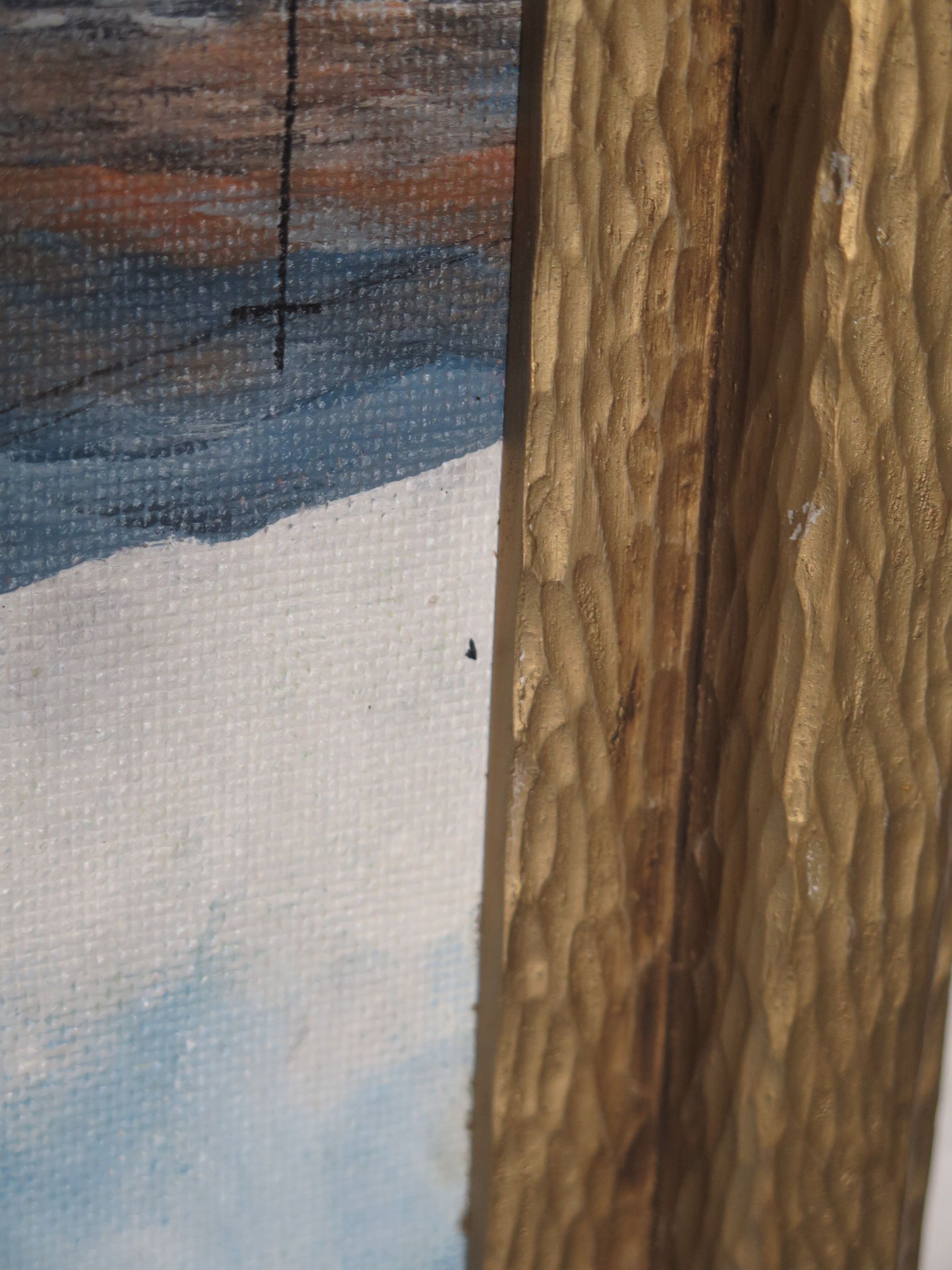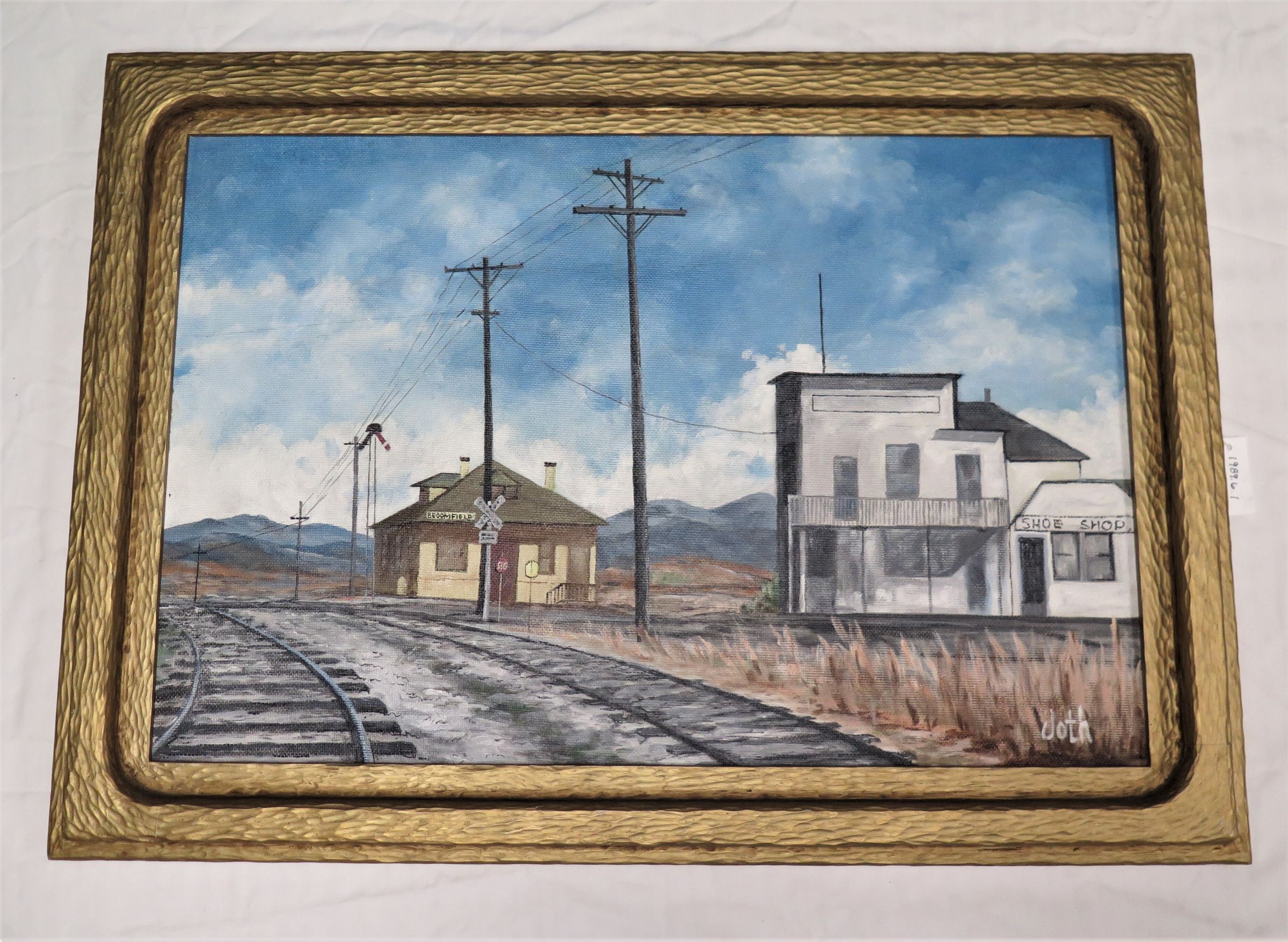 Oil painting of Broomfield Depot and Jones Hall.