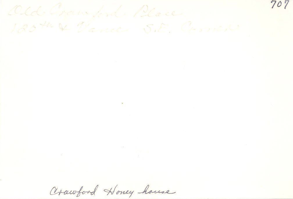 Possibly the Crawford Honey House. Old Crawford place on 120th and Vance. S.E. corner. Photograph taken ca 1950.