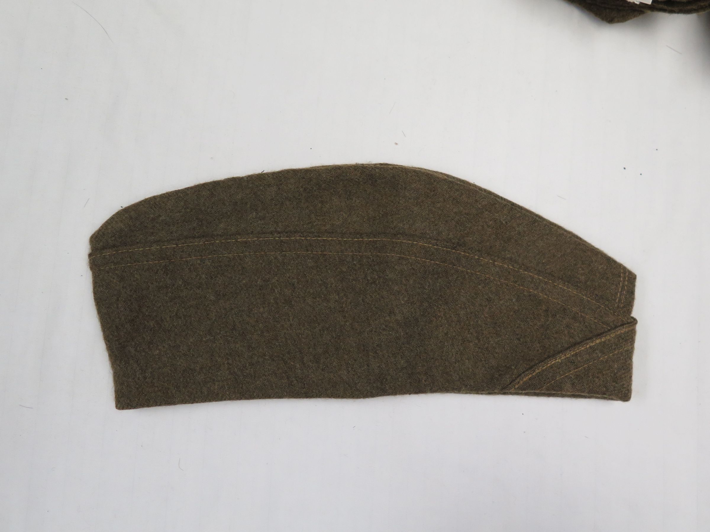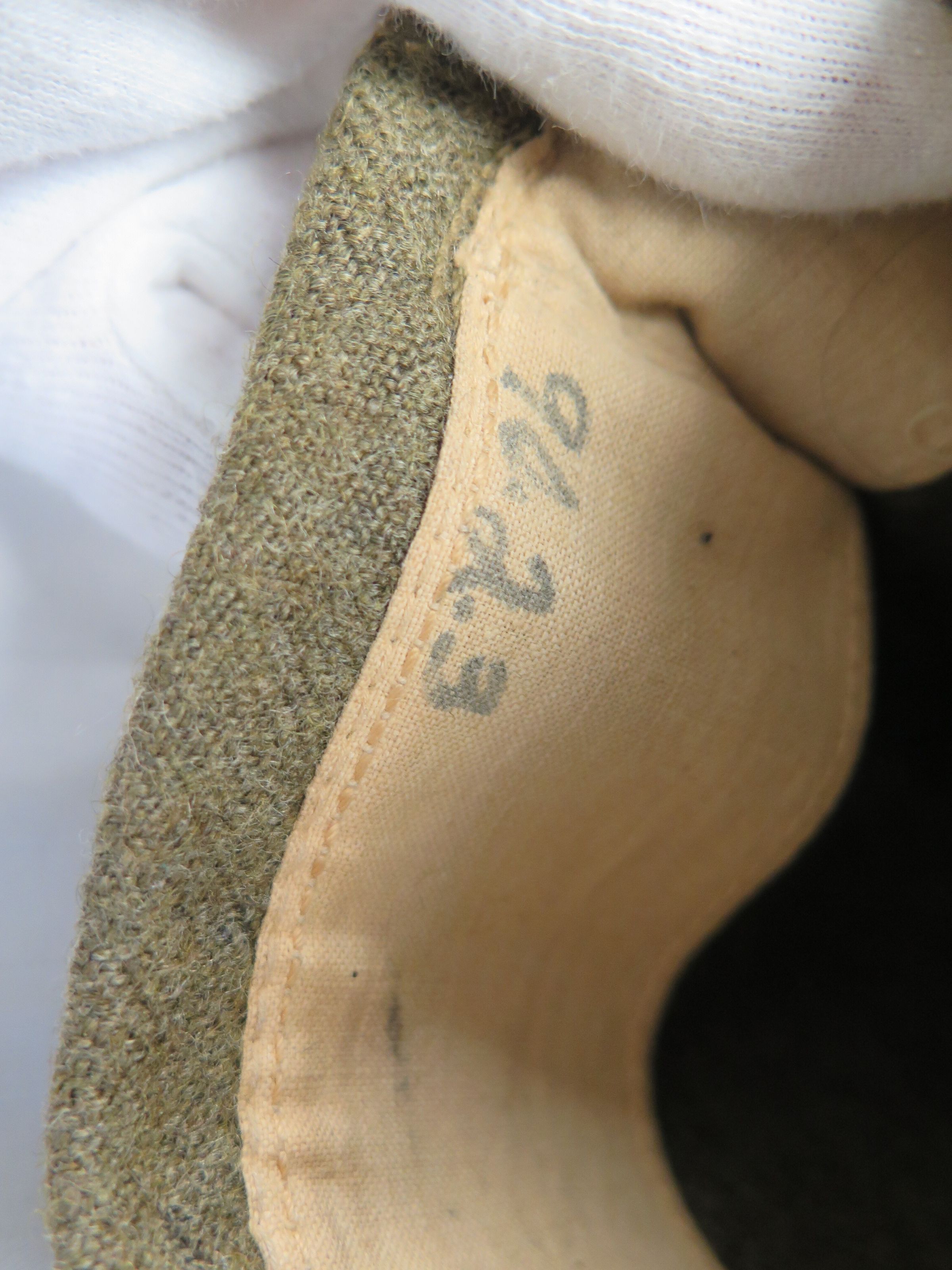 This is an olive green wool cap that was part of a WWI military uniform. Cap measures 5" (w) x 11.5" (l).
