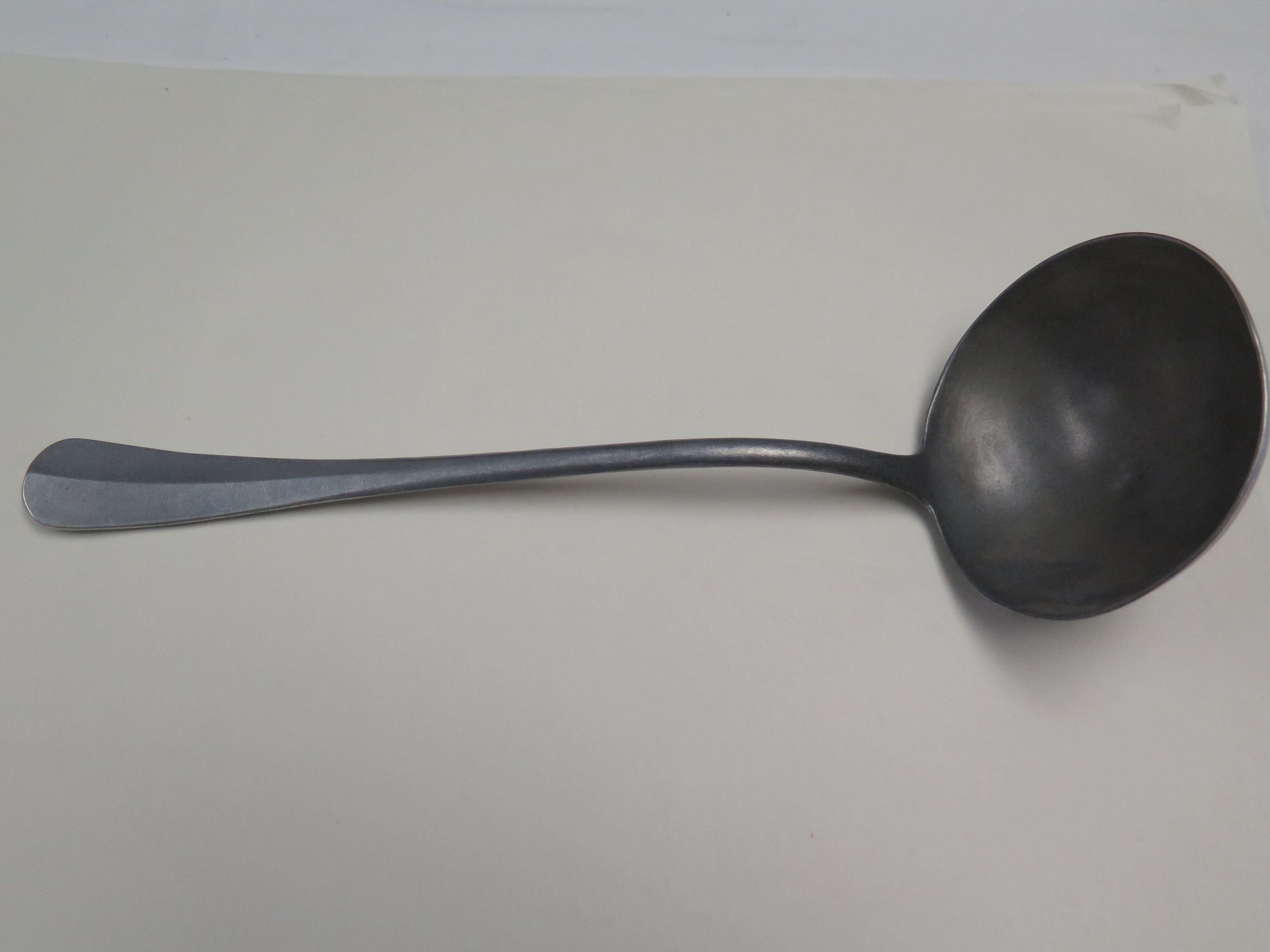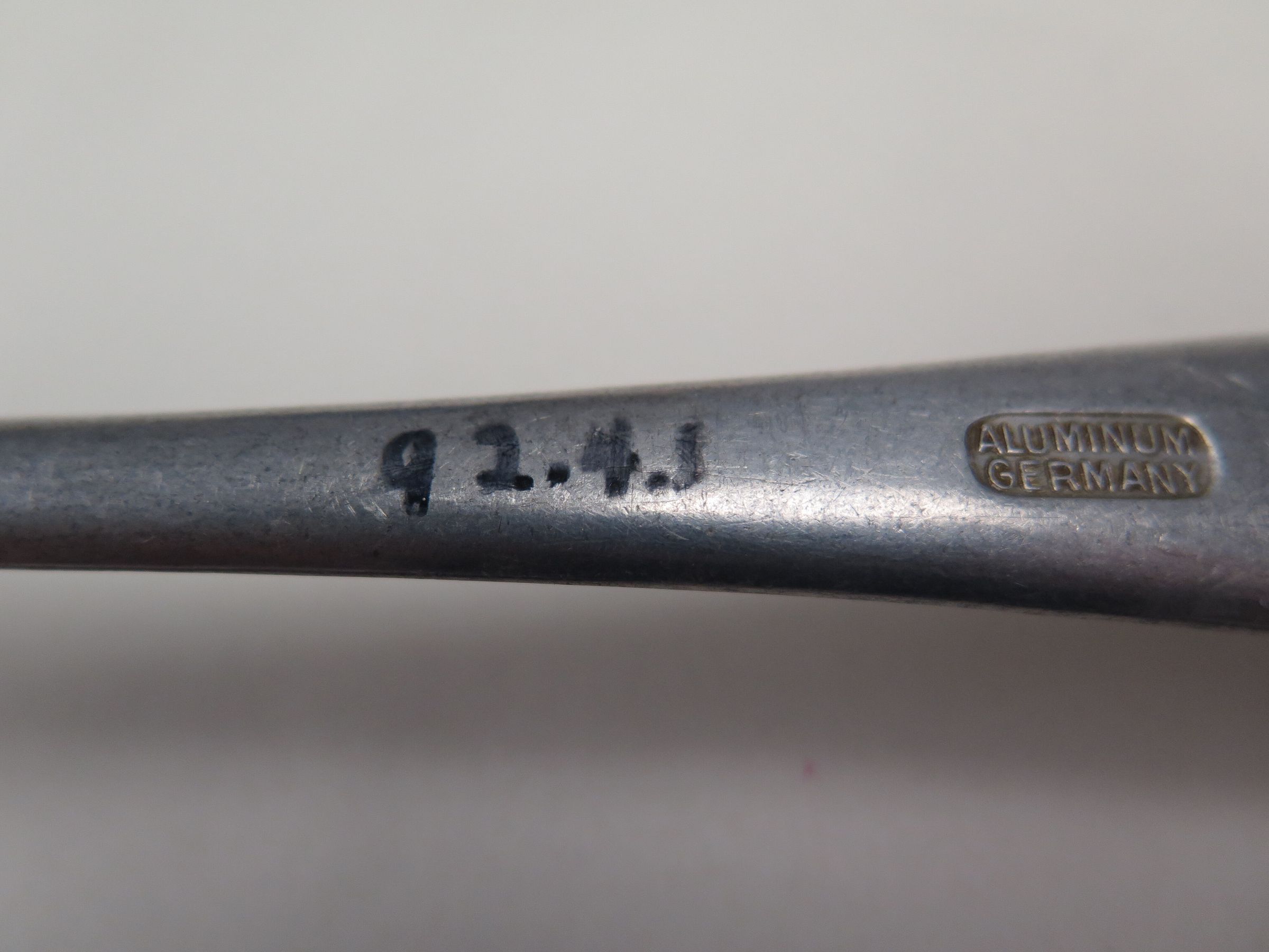 This is an aluminum ladle made in Germany. The ladle measures 11.5" (l) x 3.75" (dia).