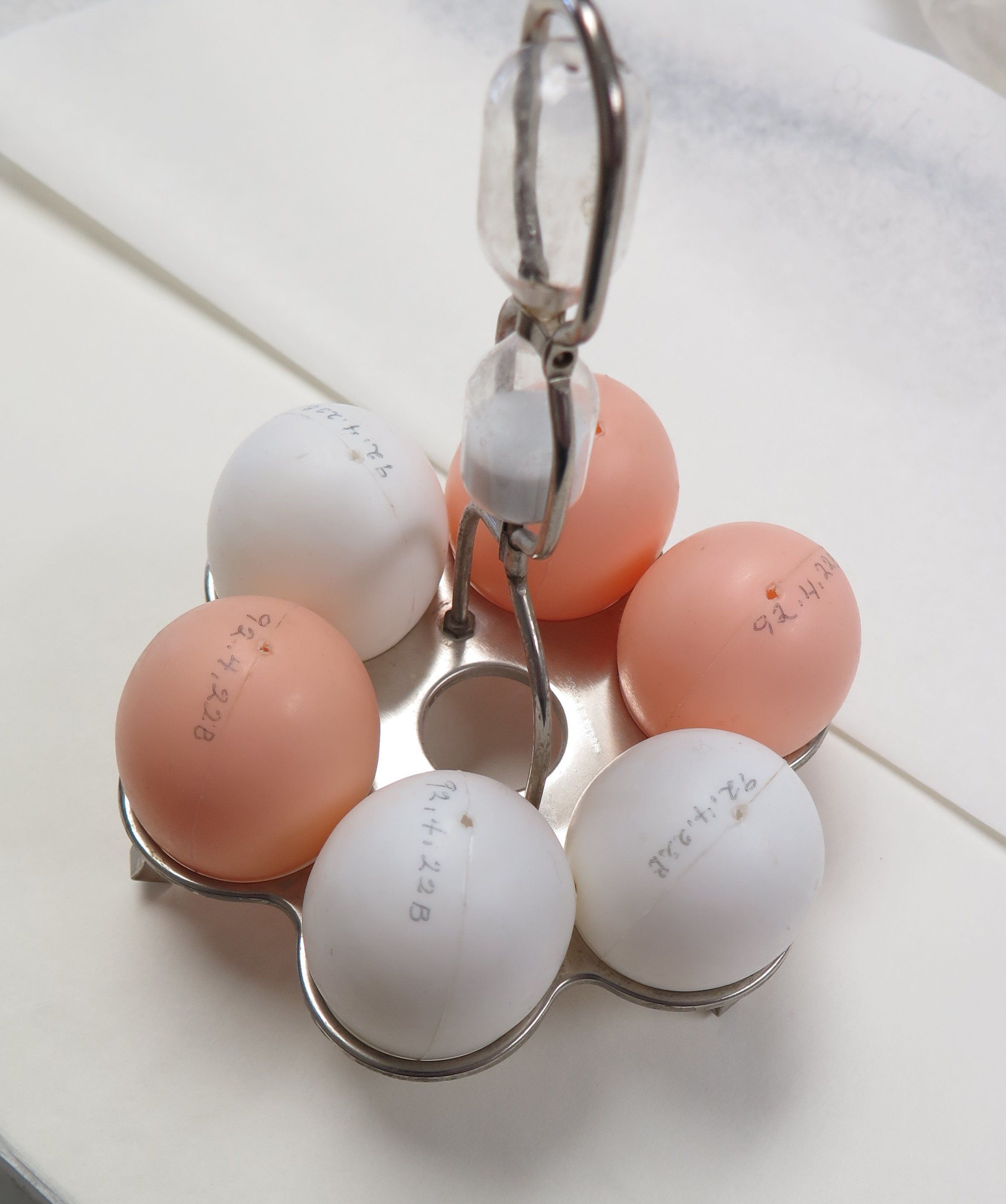 This is a set of six plastic eggs, three white, and three tan.Collection